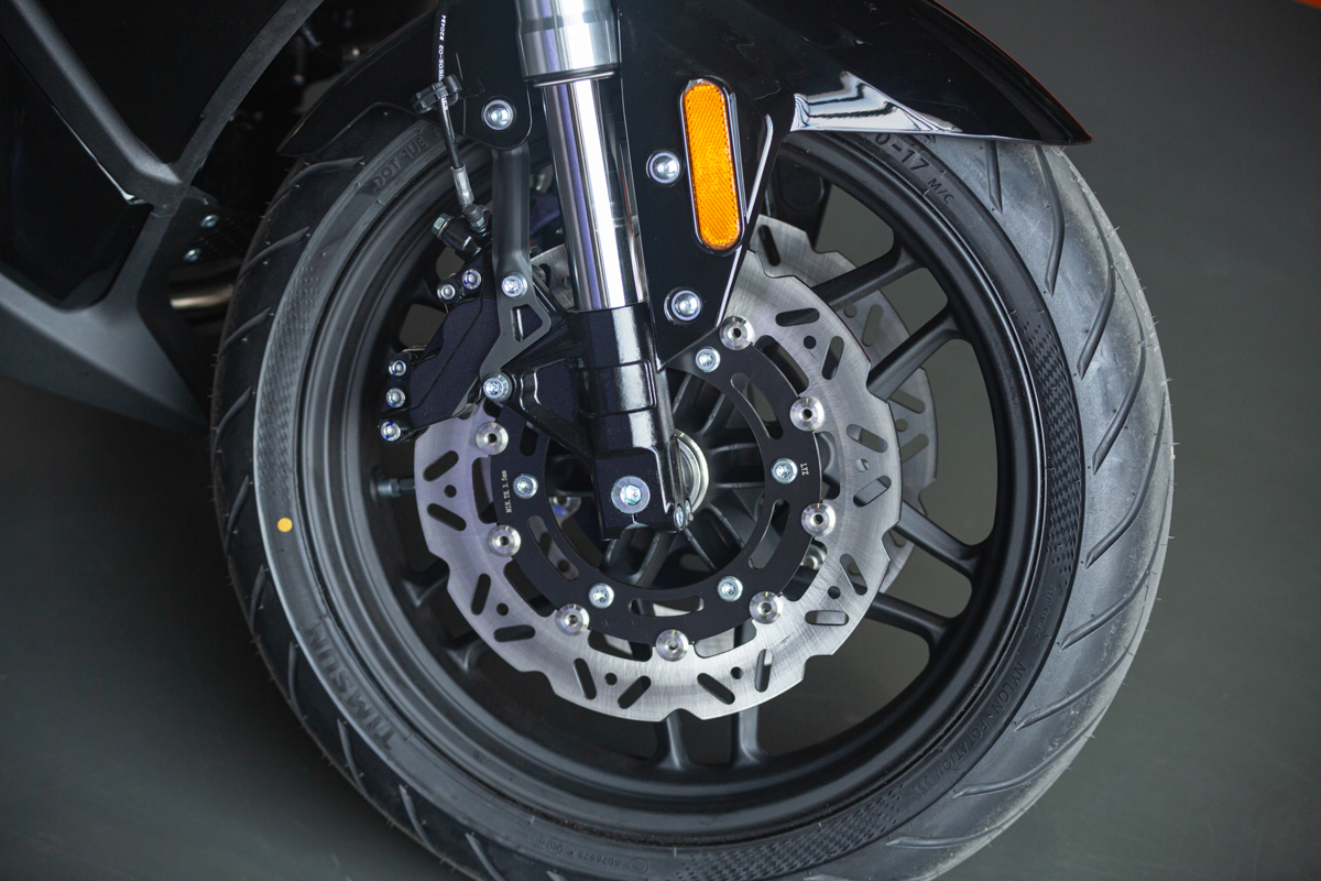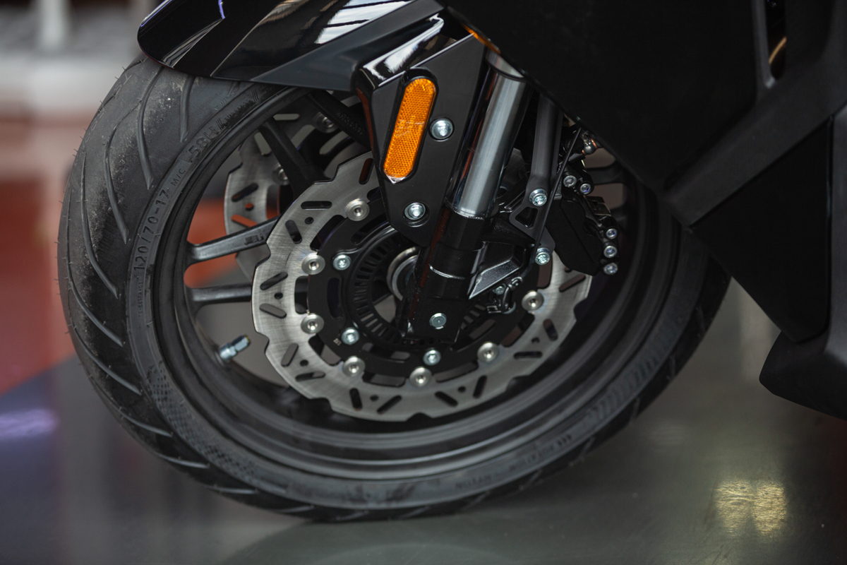 - Тормоза: гидравлические дисковые с двухканальной системой ABS спереди и сзади — обеспечивают эффективное и безопасное торможение
