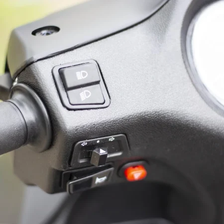- Практичность для двух человек. Двухуровневое сиденье, вместительный багажник под сиденьем для двух шлемов и бардачок с замком.