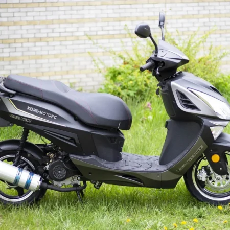 ХОРС 058 NEW — идеальный городской скутер для быстрых поездок и объезда пробок. С объемом двигателя 49.6 см³ он сочетает маневренность, минимальный расход топлива и полное соответствие требованиям для категории прав «AM». Эта модель адаптирована к холодному климату и сложным городским условиям.