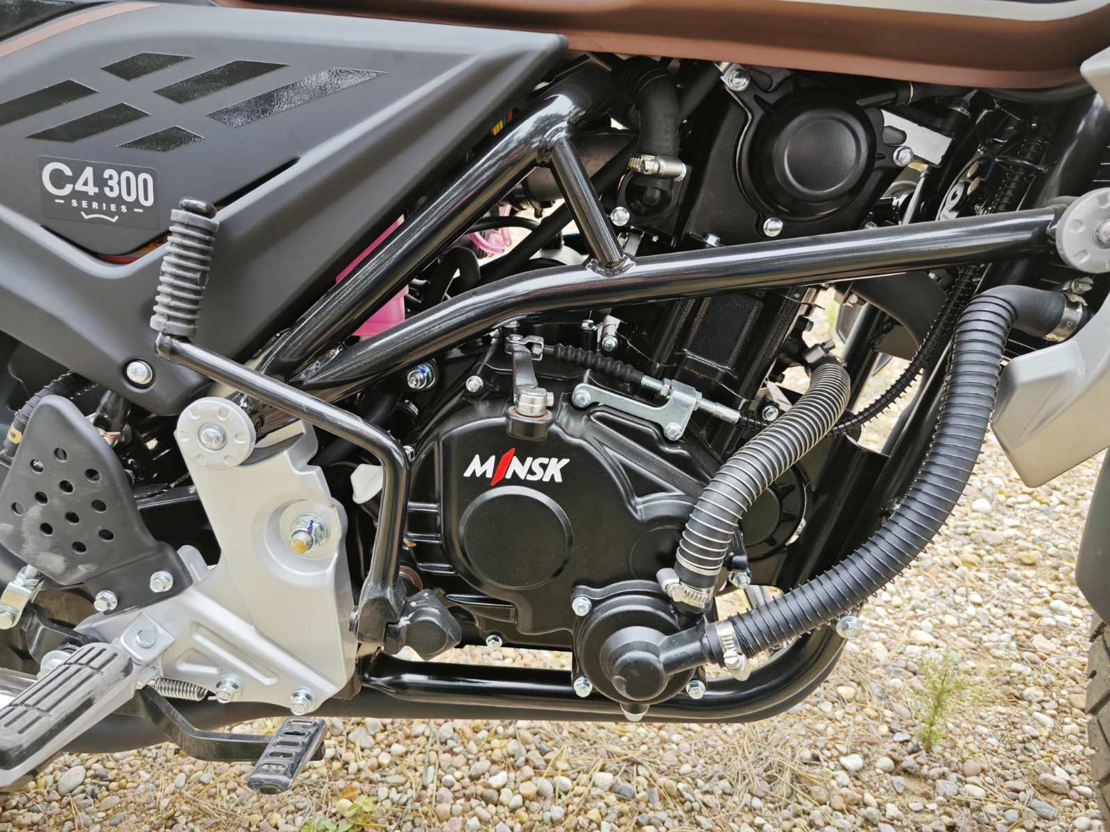 • Двигатель: 300-кубовый, встроен в стальную дуплексную раму, обеспечивает хорошую динамику.