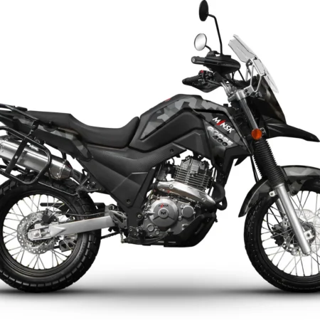 Мотоцикл оснащен электронной панелью с тахометром, спидометром, USB-зарядкой и датчиком уровня топлива — все для комфортной эксплуатации. Широкое ветровое стекло с регулируемым креплением защищает от ветра и вибраций. Защита рук и двигателя в комплекте повышают безопасность в дальних поездках. Передняя часть рамы служит радиатором охлаждения двигателя воздушно-масляного типа.