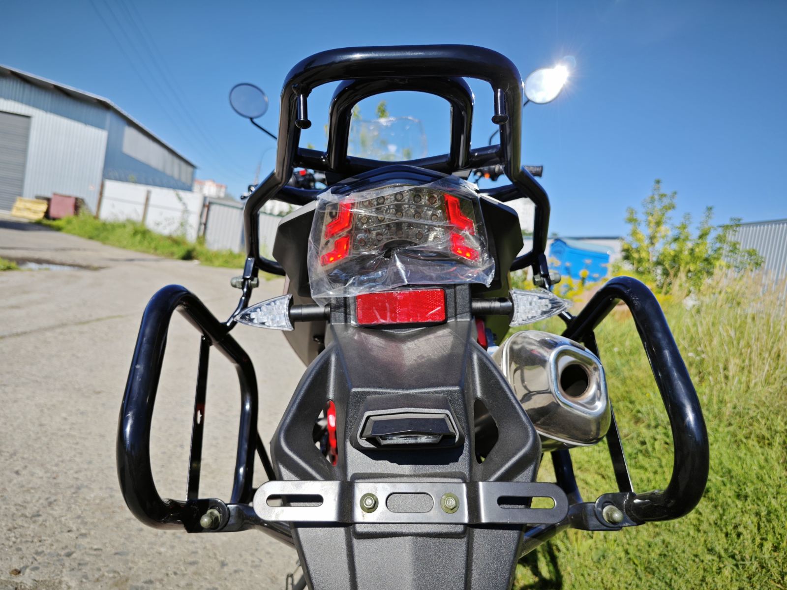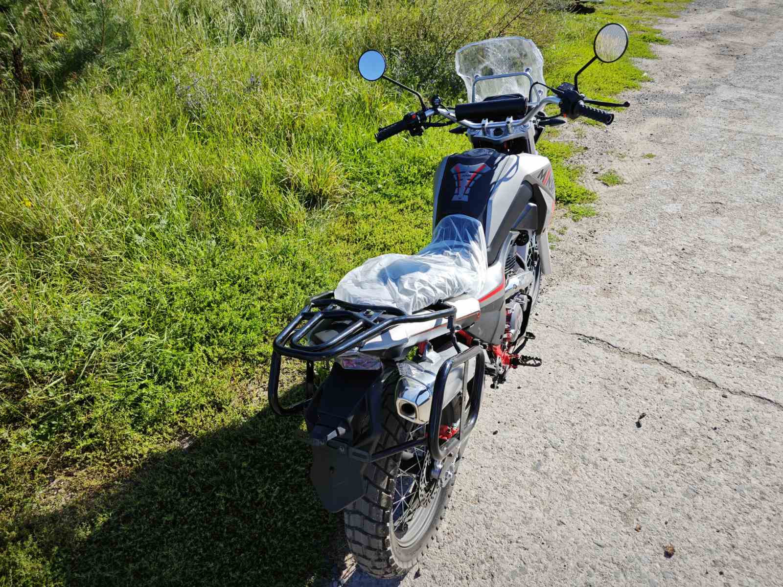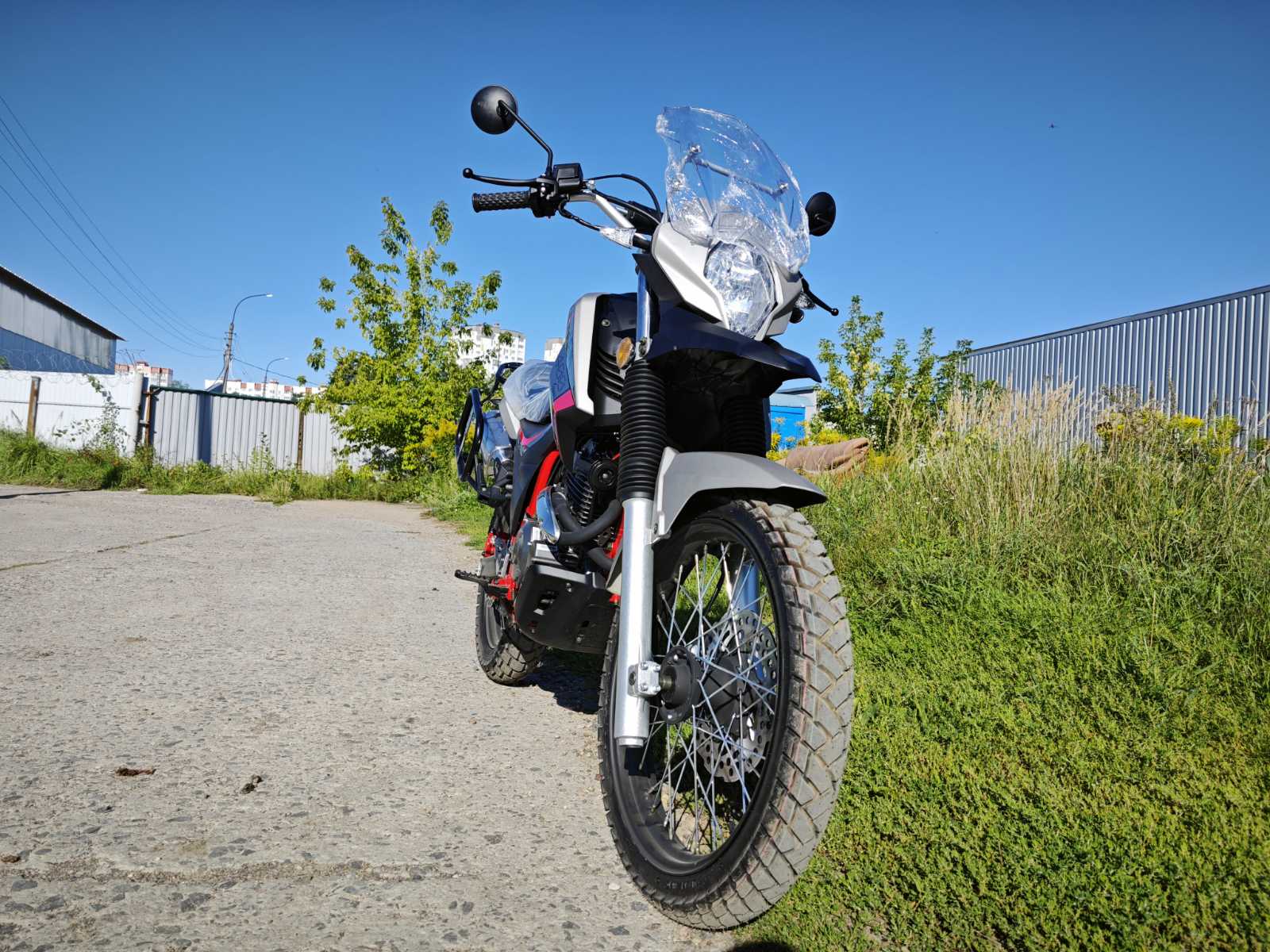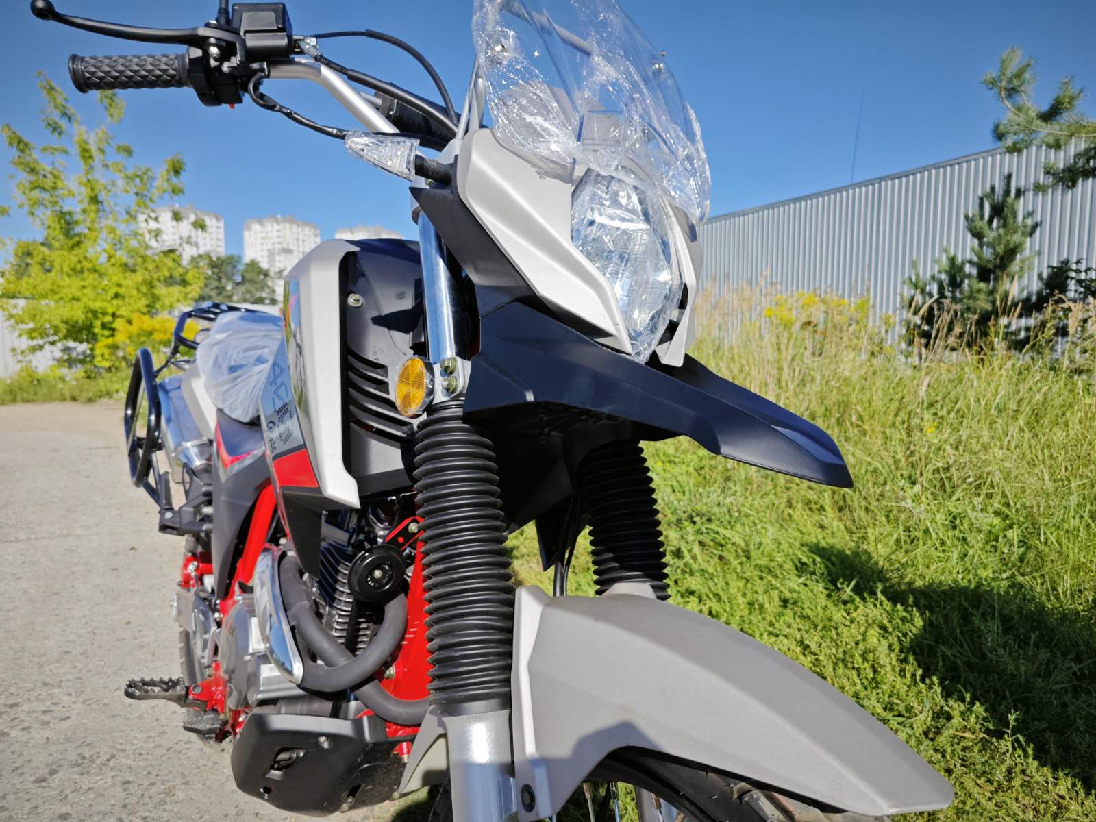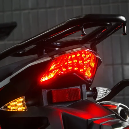 Мотоцикл оснащен электронной панелью с тахометром, спидометром, USB-зарядкой и датчиком уровня топлива — все для комфортной эксплуатации. Широкое ветровое стекло с регулируемым креплением защищает от ветра и вибраций. Защита рук и двигателя в комплекте повышают безопасность в дальних поездках. Передняя часть рамы служит радиатором охлаждения двигателя воздушно-масляного типа.