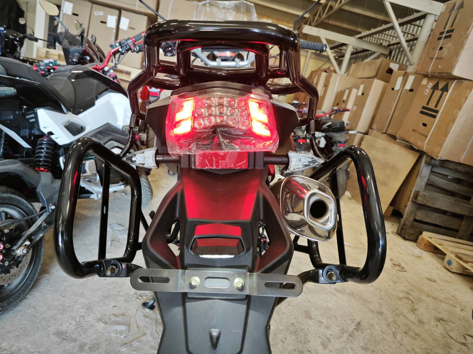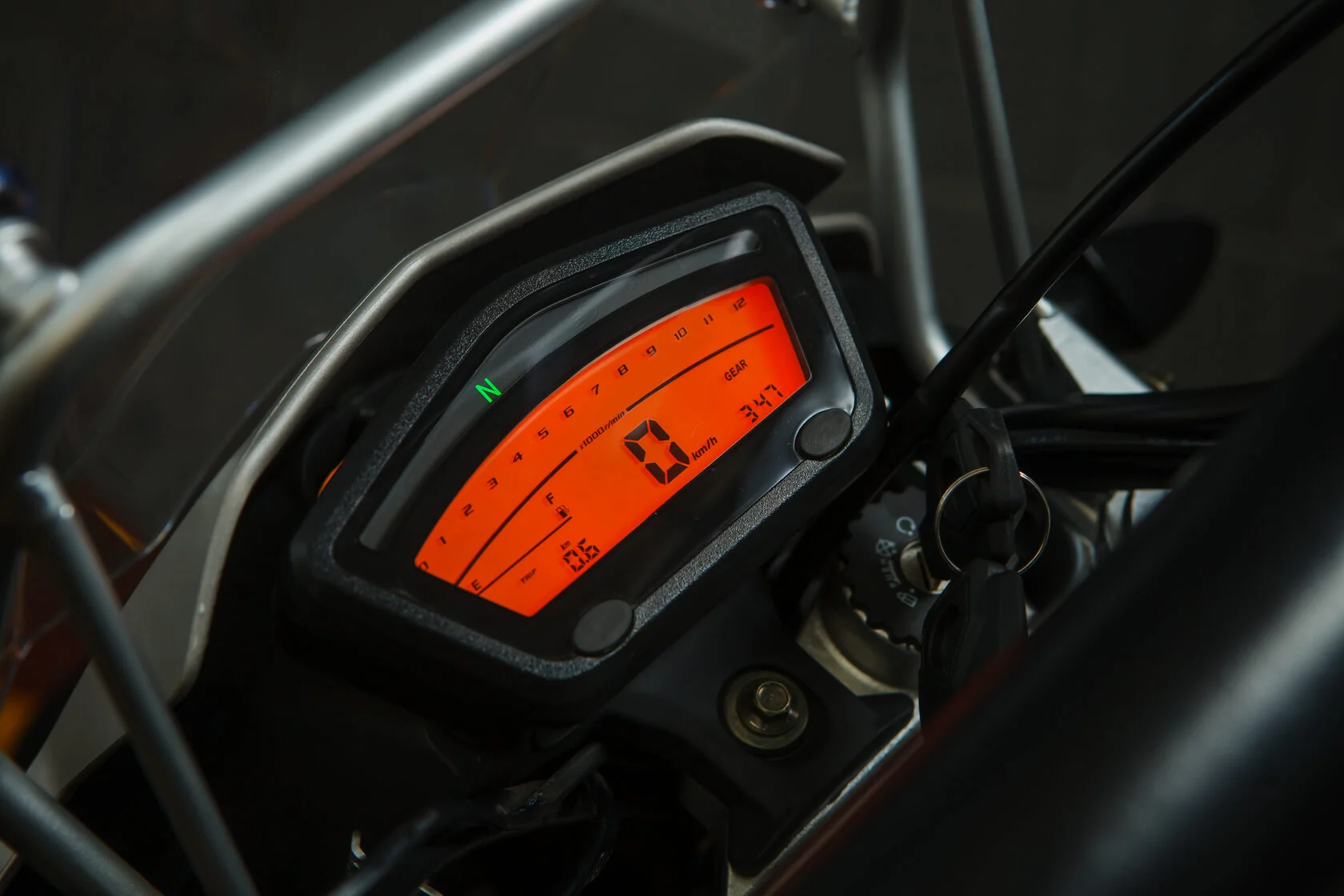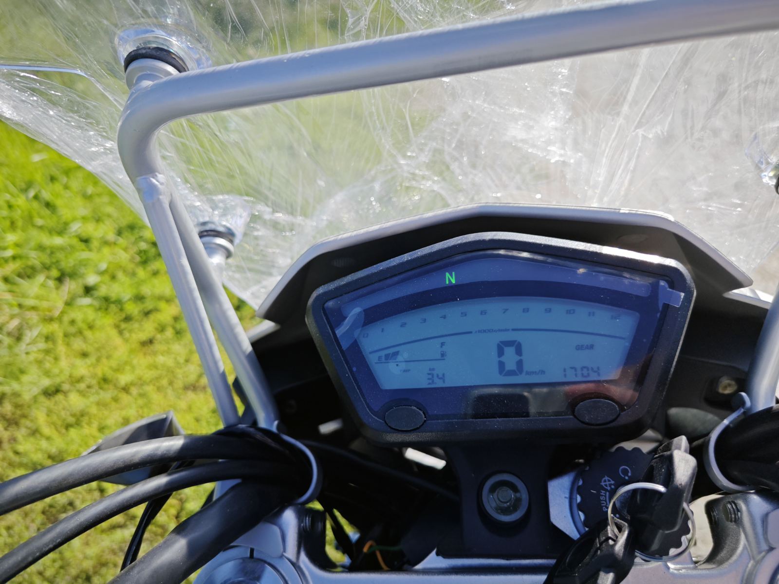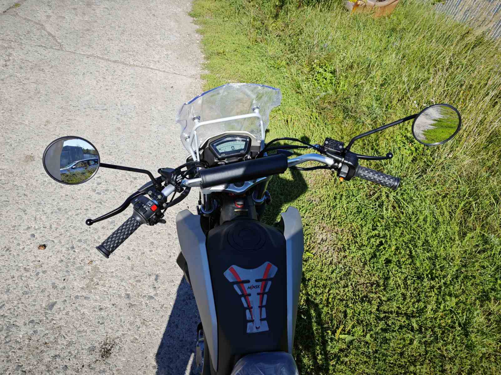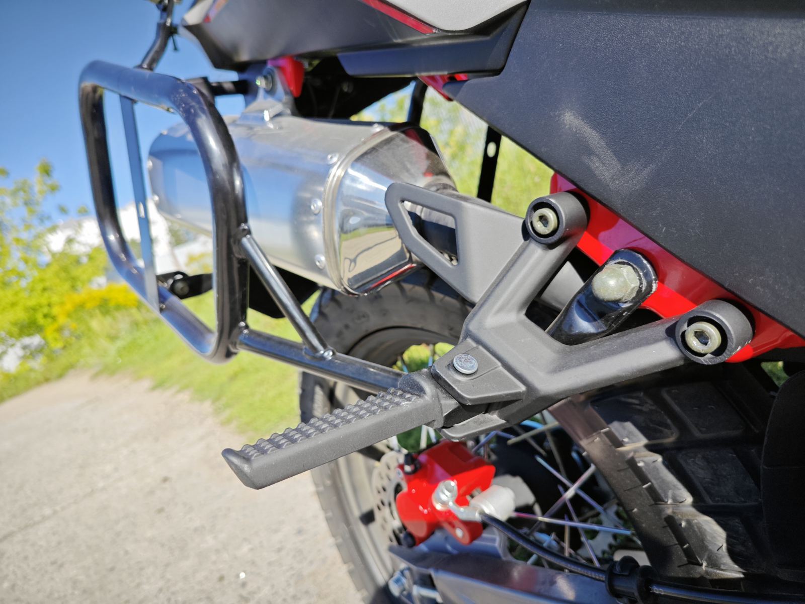 Мотоцикл оснащен электронной панелью с тахометром, спидометром, USB-зарядкой и датчиком уровня топлива — все для комфортной эксплуатации. Широкое ветровое стекло с регулируемым креплением защищает от ветра и вибраций. Защита рук и двигателя в комплекте повышают безопасность в дальних поездках. Передняя часть рамы служит радиатором охлаждения двигателя воздушно-масляного типа.