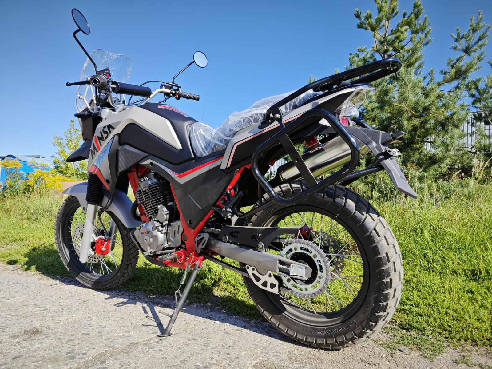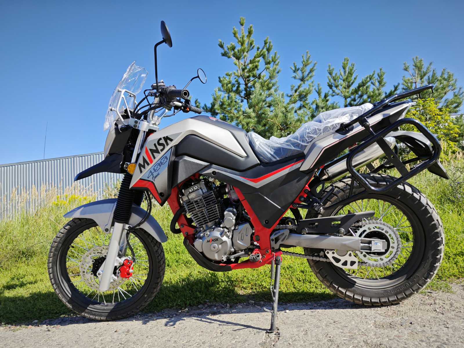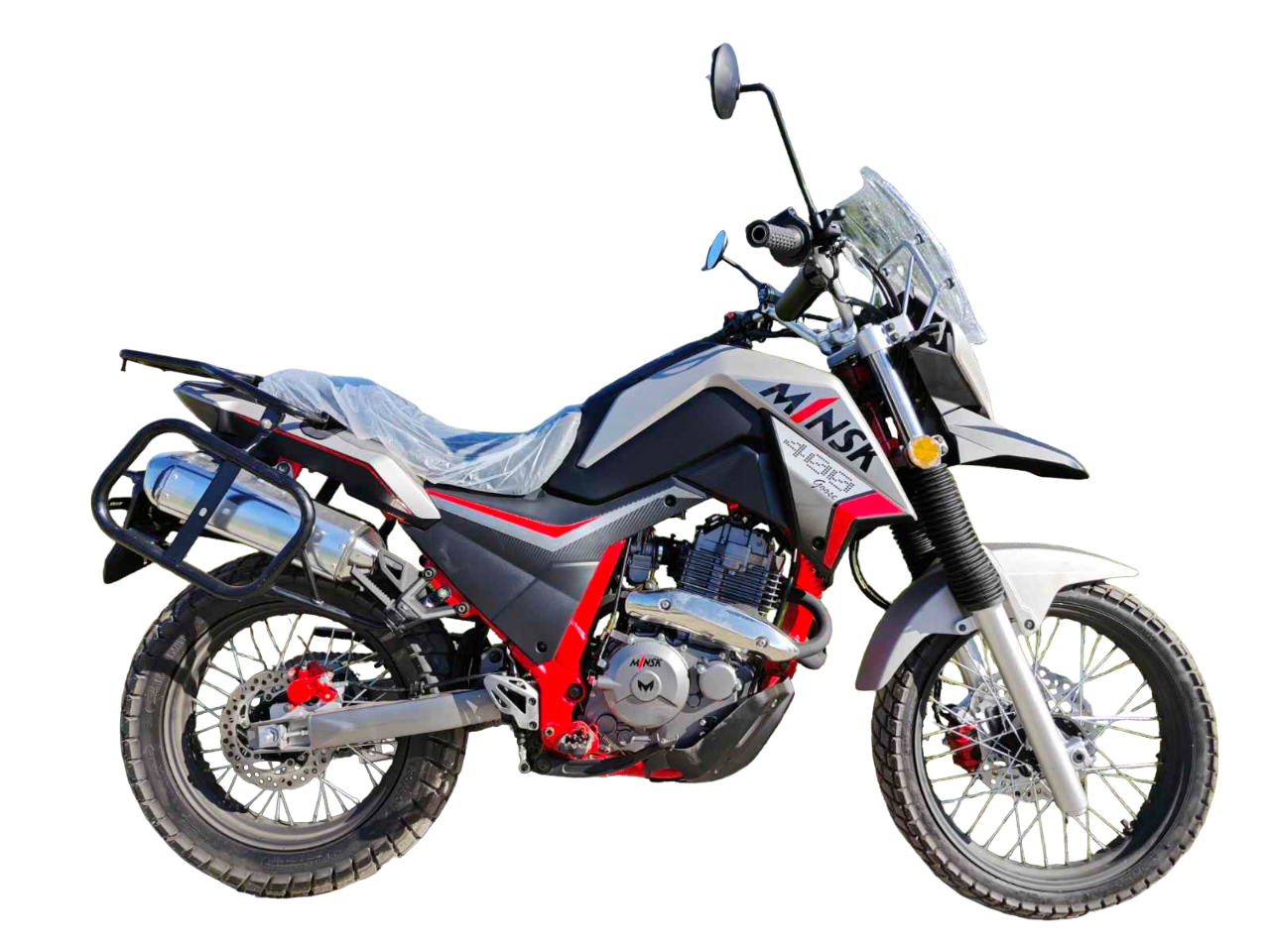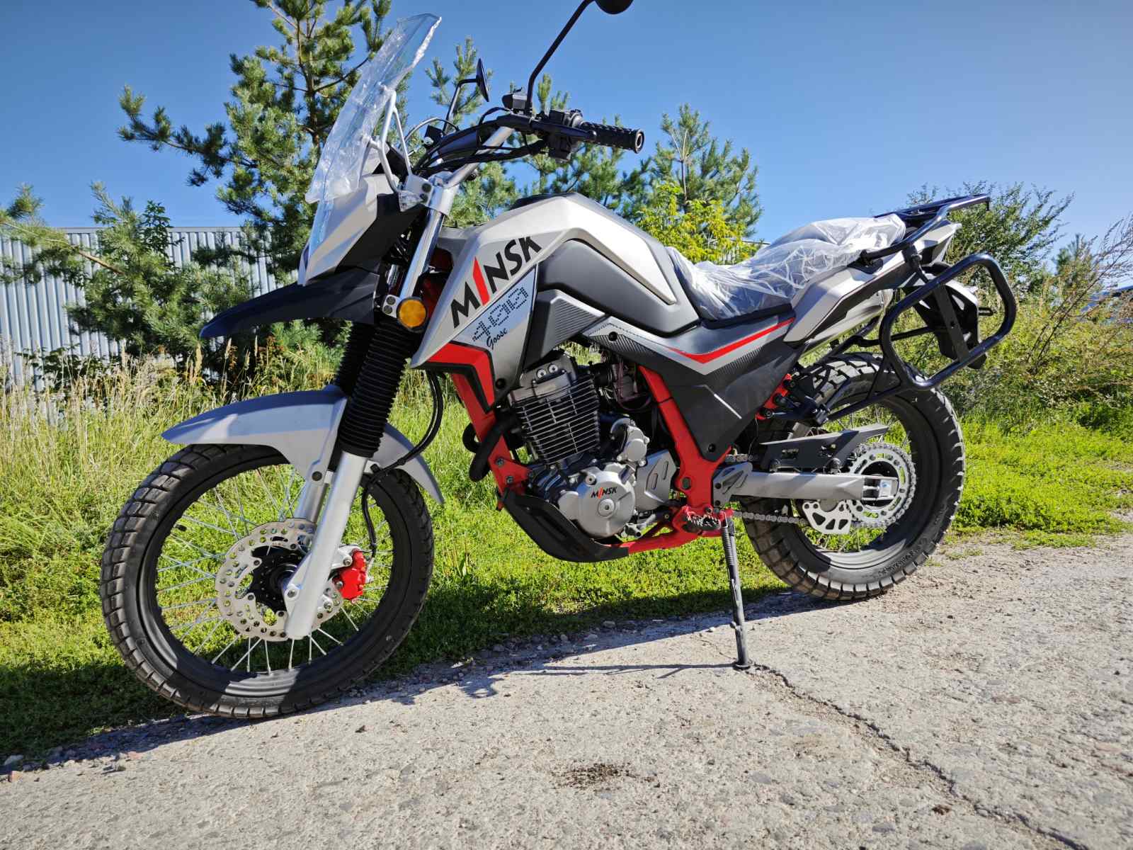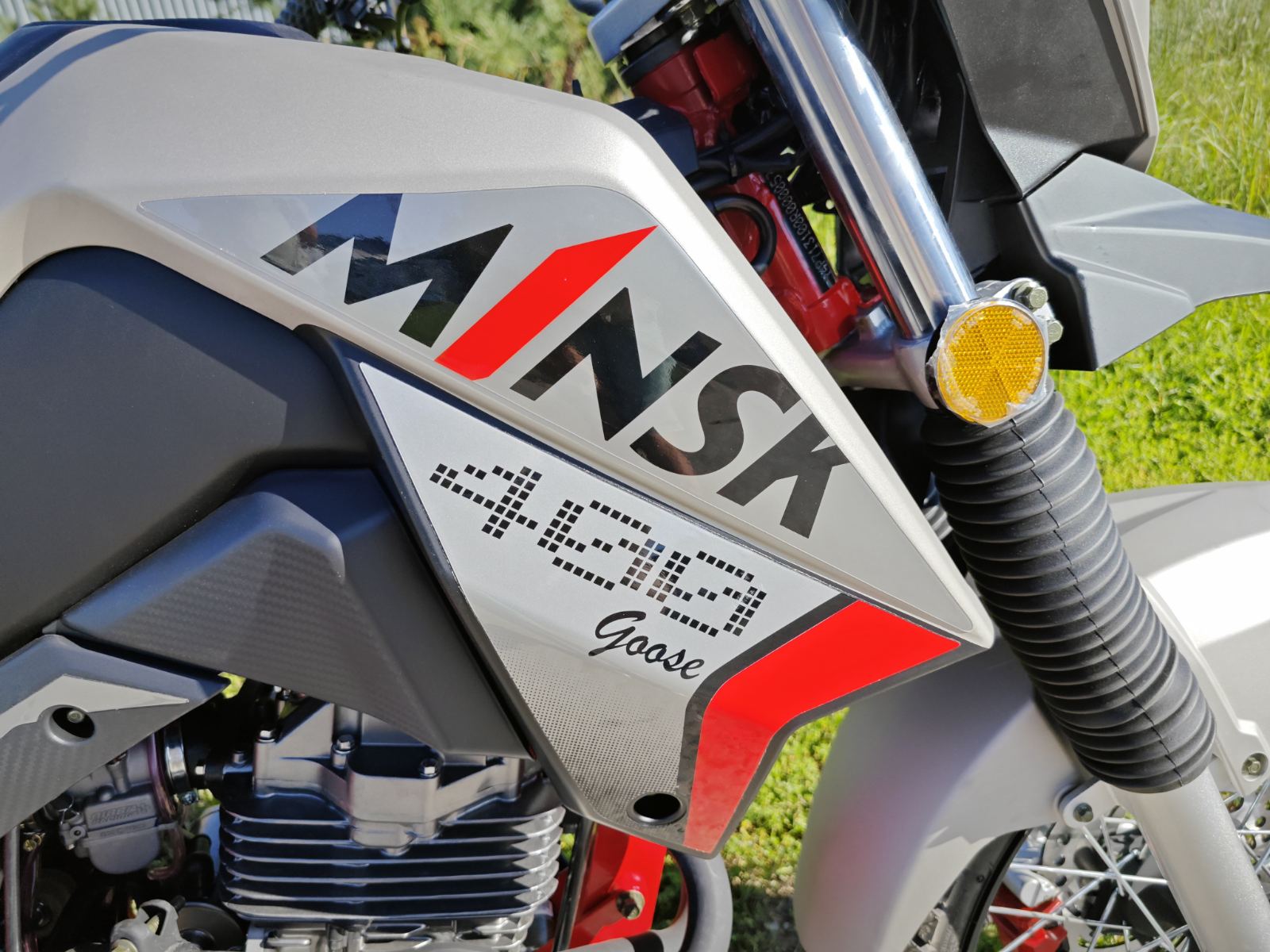 Модель мотоцикла Minsk GOOSE 400 сочетает мощность и универсальность. Высокий ветровик и острый «клюв» переднего крыла обеспечивают отличную защиту и стильный внешний вид. Спицованные колеса и подвеска, рассчитанная на бездорожье, делают его идеальным для путешествий в разных условиях. Надежная система охлаждения и простая конструкция гарантируют долговечность и ремонтопригодность.