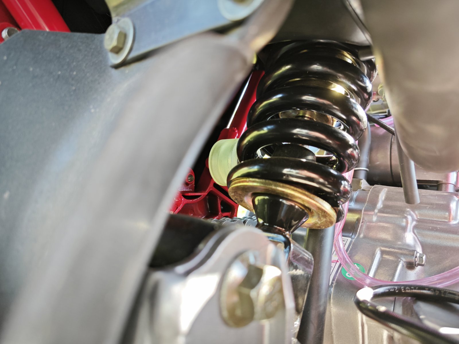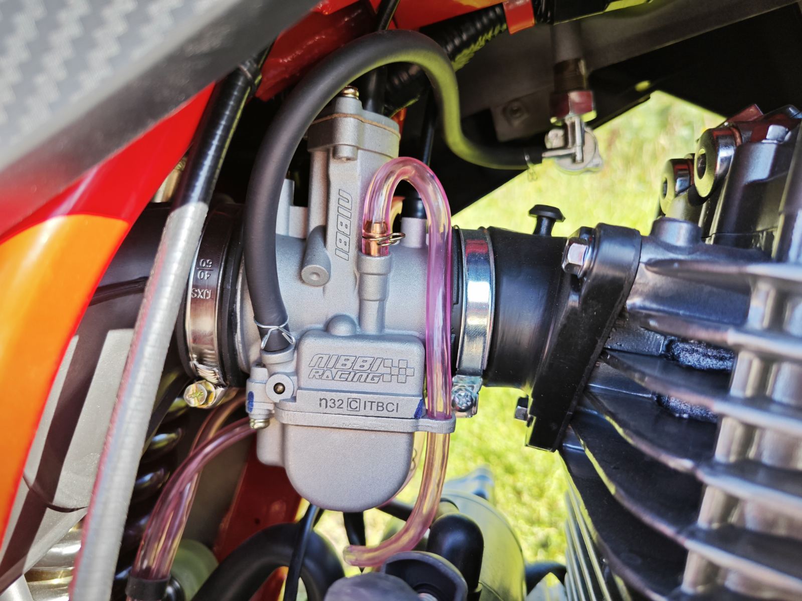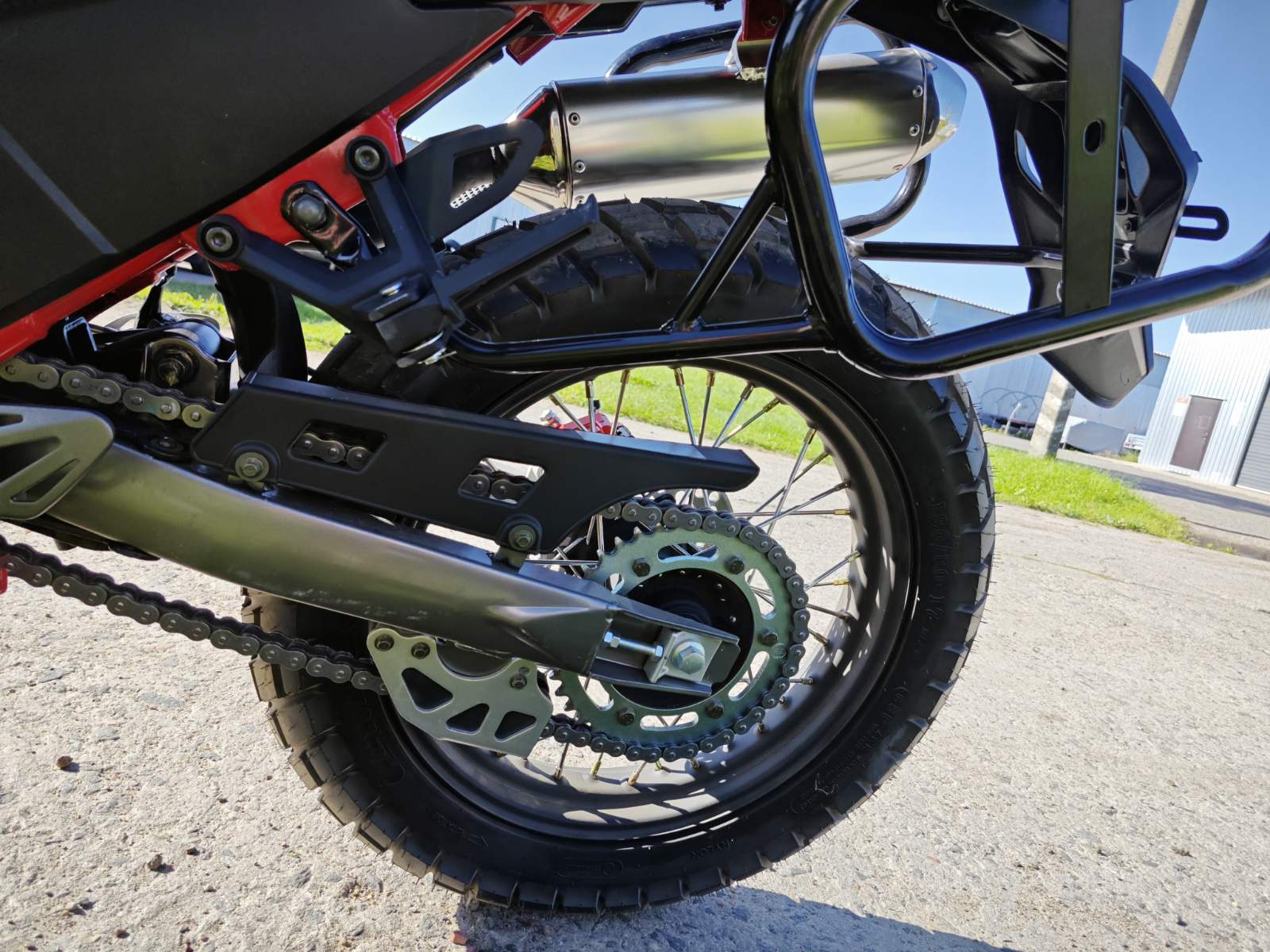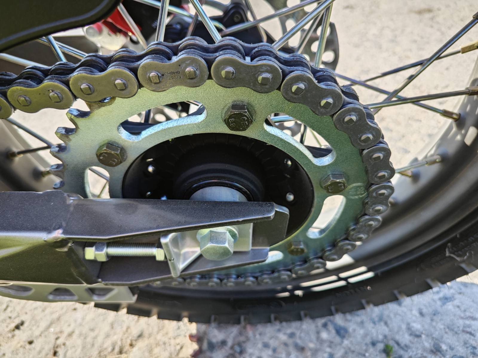 Объем топливного бака — 15 литров, выполнен из металла для надежности. Двигатель одноцилиндровый, четырехклапанный с двумя распредвалами, мощностью 27,3 л.с., крутящим моментом 32,5 Н/м при 5000 об/мин. Масляное охлаждение реализовано через переднюю часть рамы без радиатора. Материалы деталей обеспечивают долговечность и ремонтопригодность.