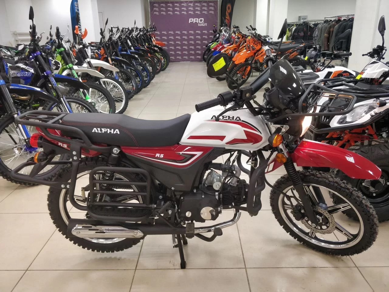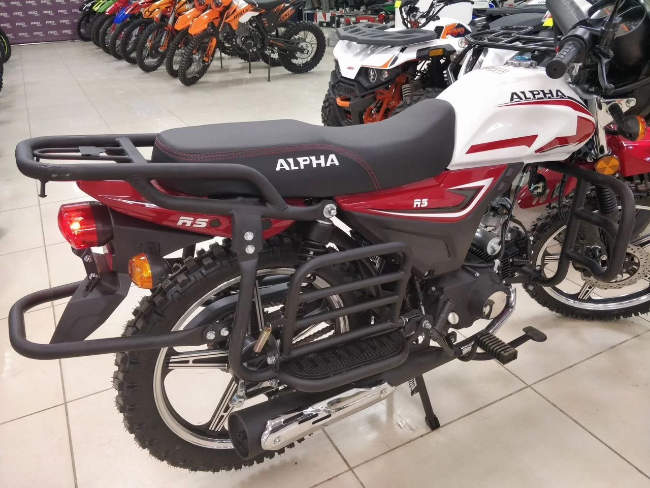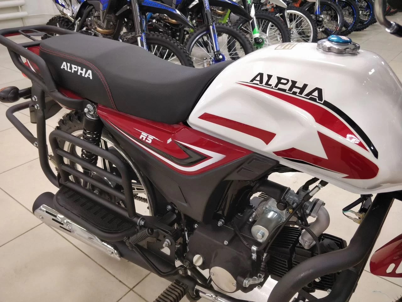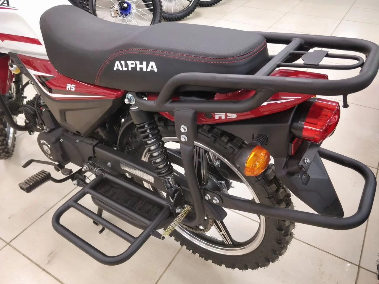 Базовая Alpha RS — мопед, под который придется пришлось бы докупать дуги, искать багажник, сверлить раму под подножки для пассажира.
