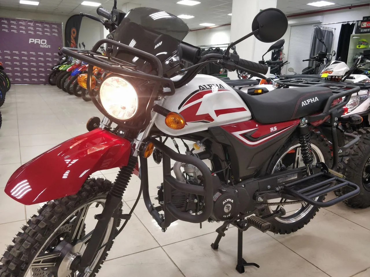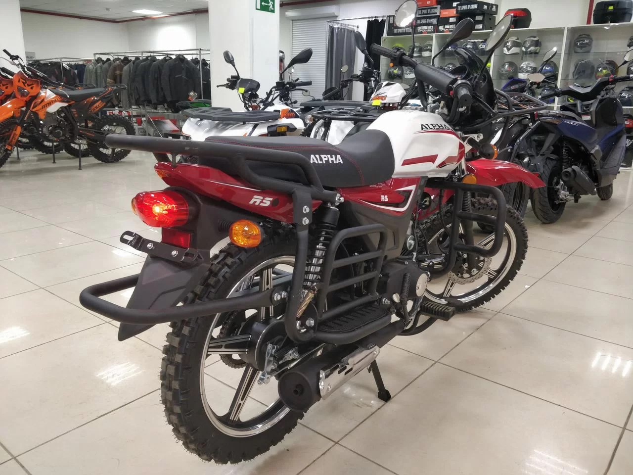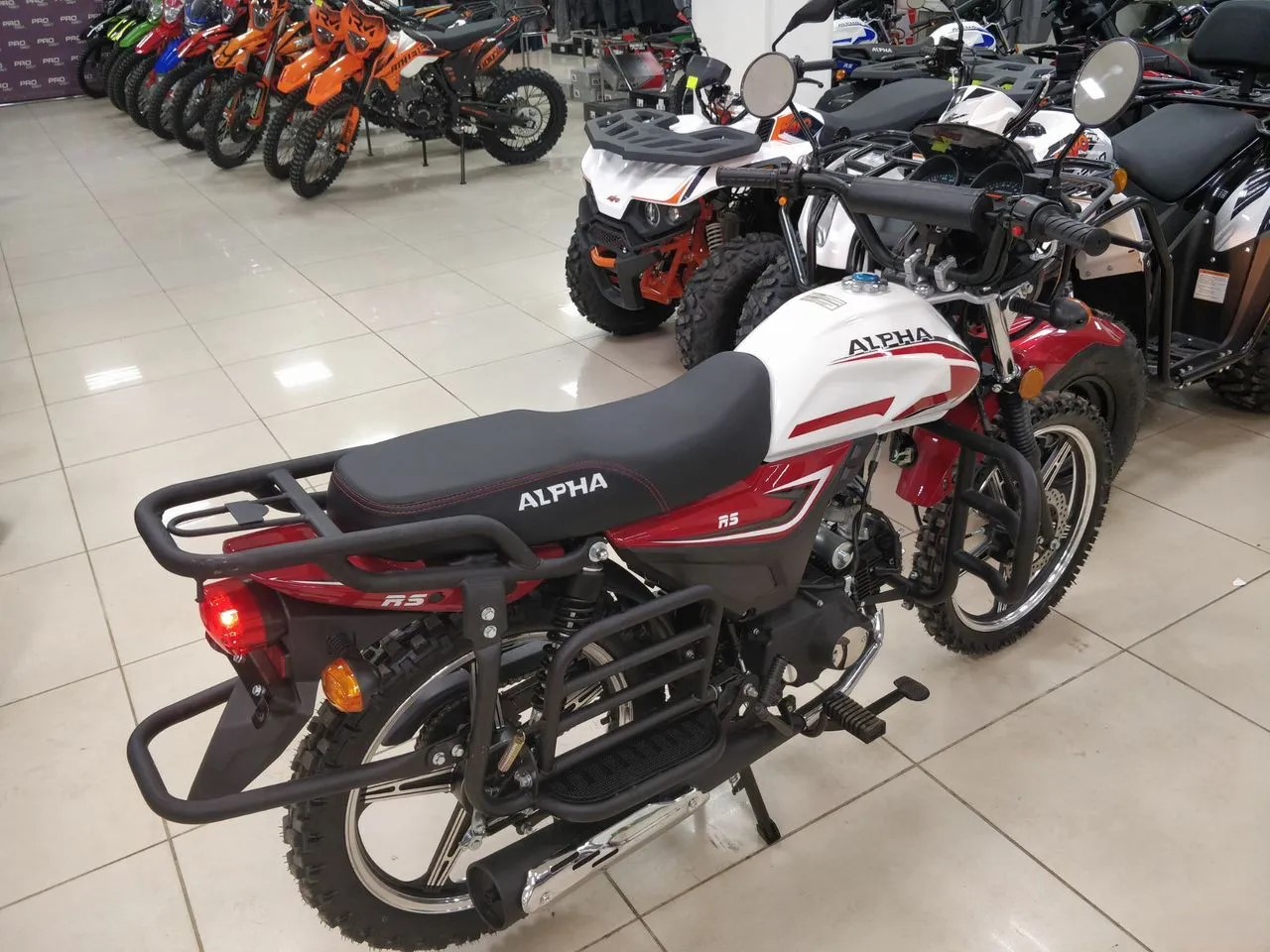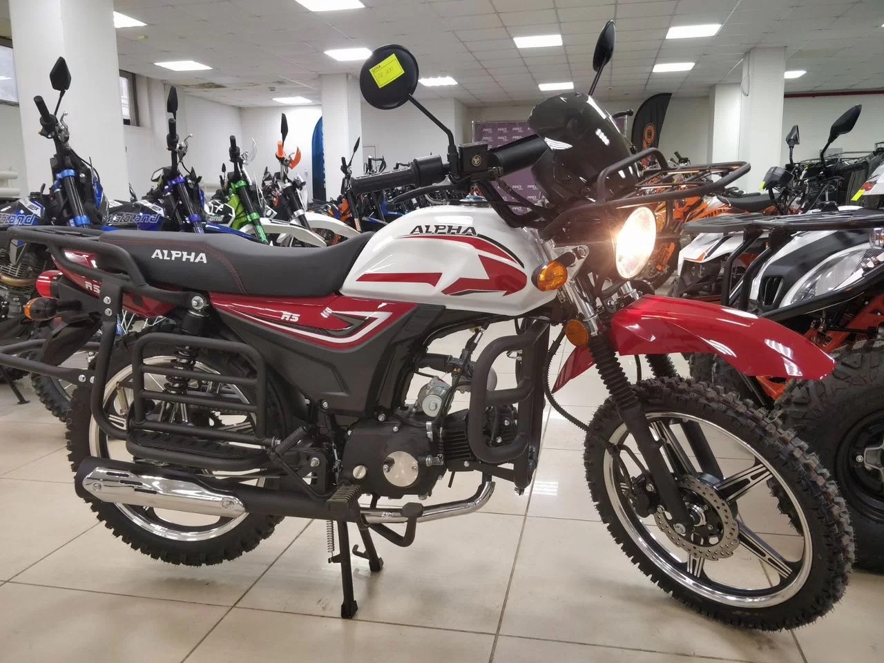 Базовая Alpha RS — мопед, под который придется пришлось бы докупать дуги, искать багажник, сверлить раму под подножки для пассажира.