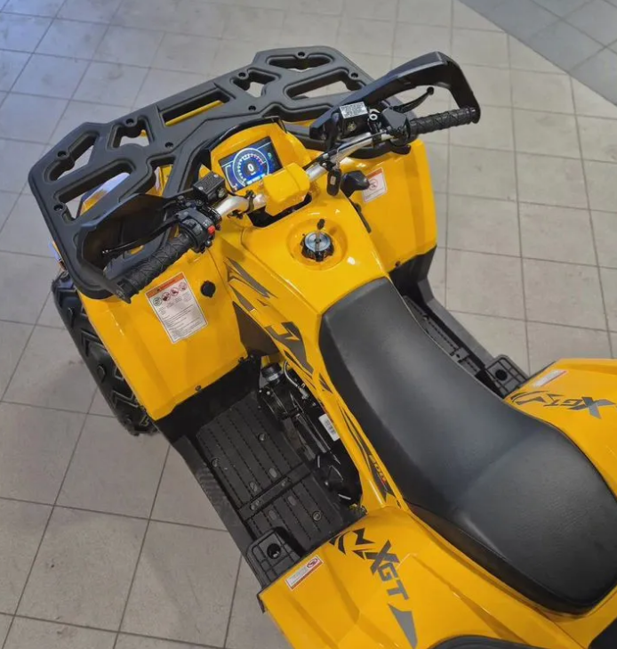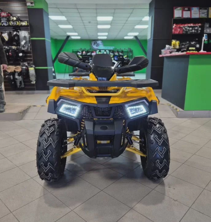 Motoland 200 Wild Track X сочетает в себе удобство, простоту обслуживания и отличную проходимость в различных условиях. Благодаря продуманной подвеске и надежным колесам на 10 дюймов, он легко справляется с неровностями и кочками, обеспечивая комфортное управление.