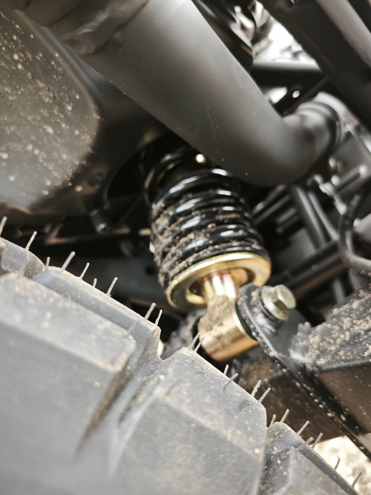 - Передняя: регулируемые выносные амортизаторы с компрессией и отскоком