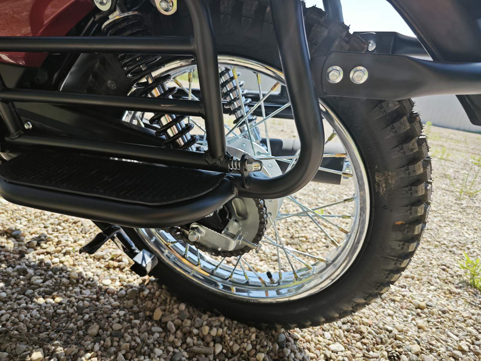 • Колеса: диаметр 18 дюймов, покрышки с крупными шипами для уверенной езды по бездорожью.
