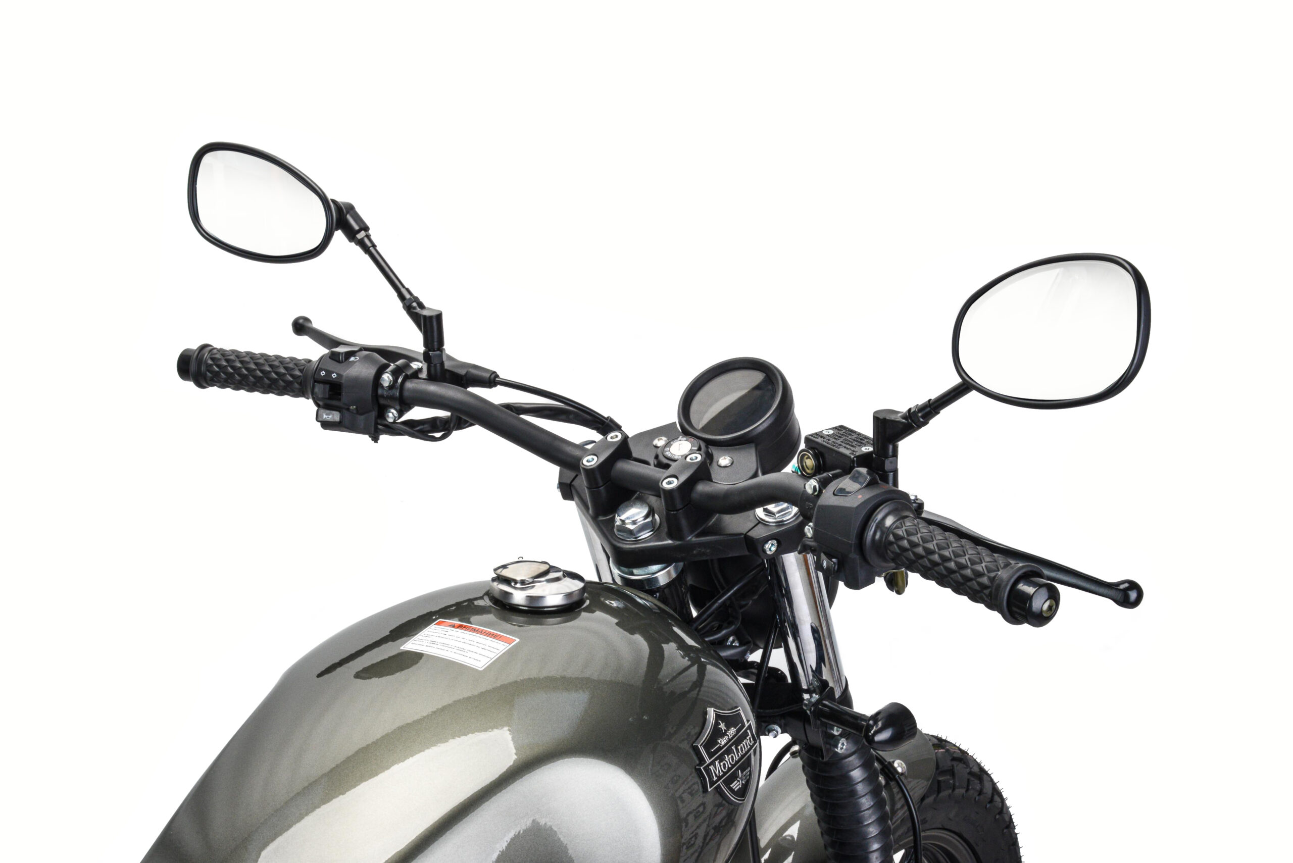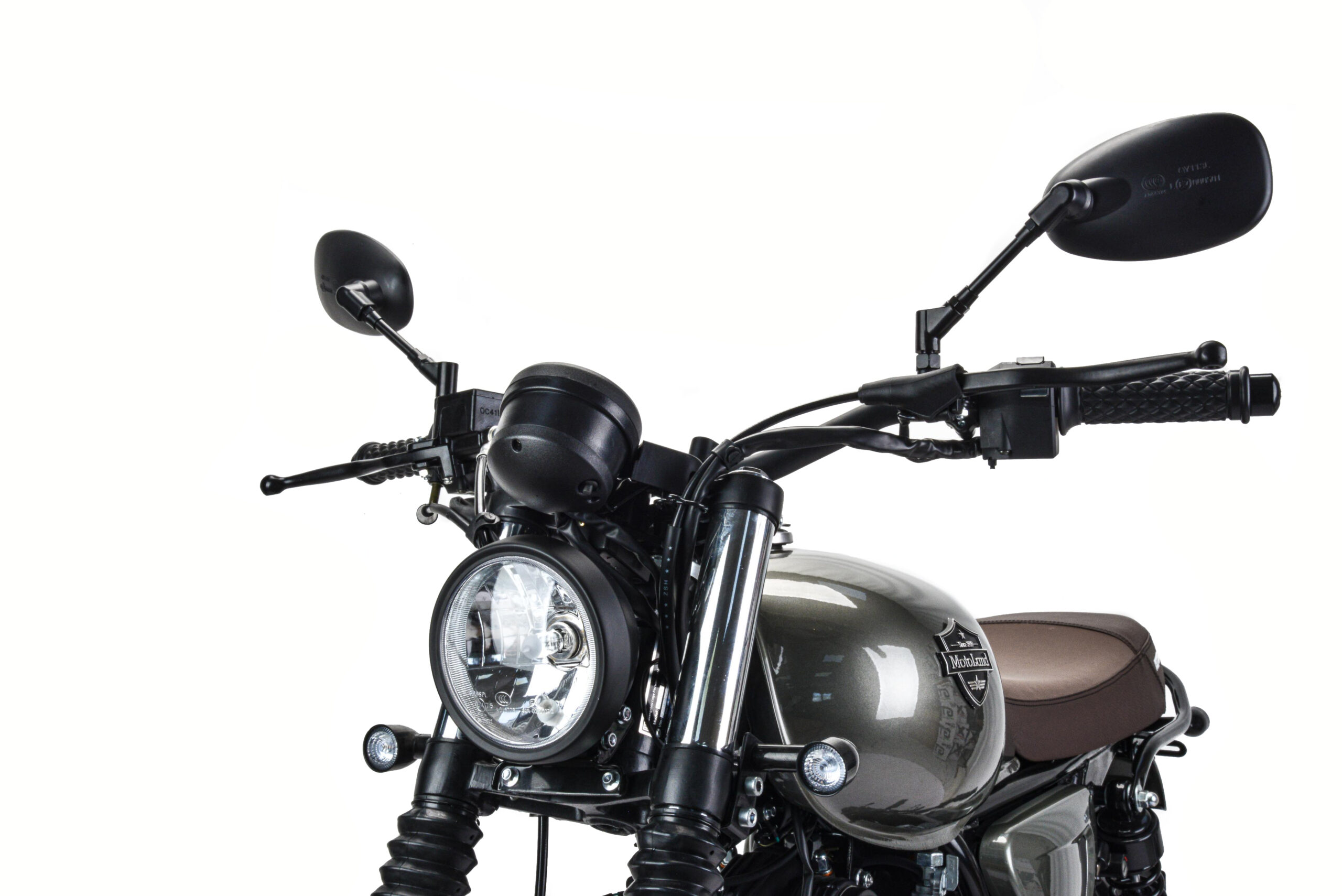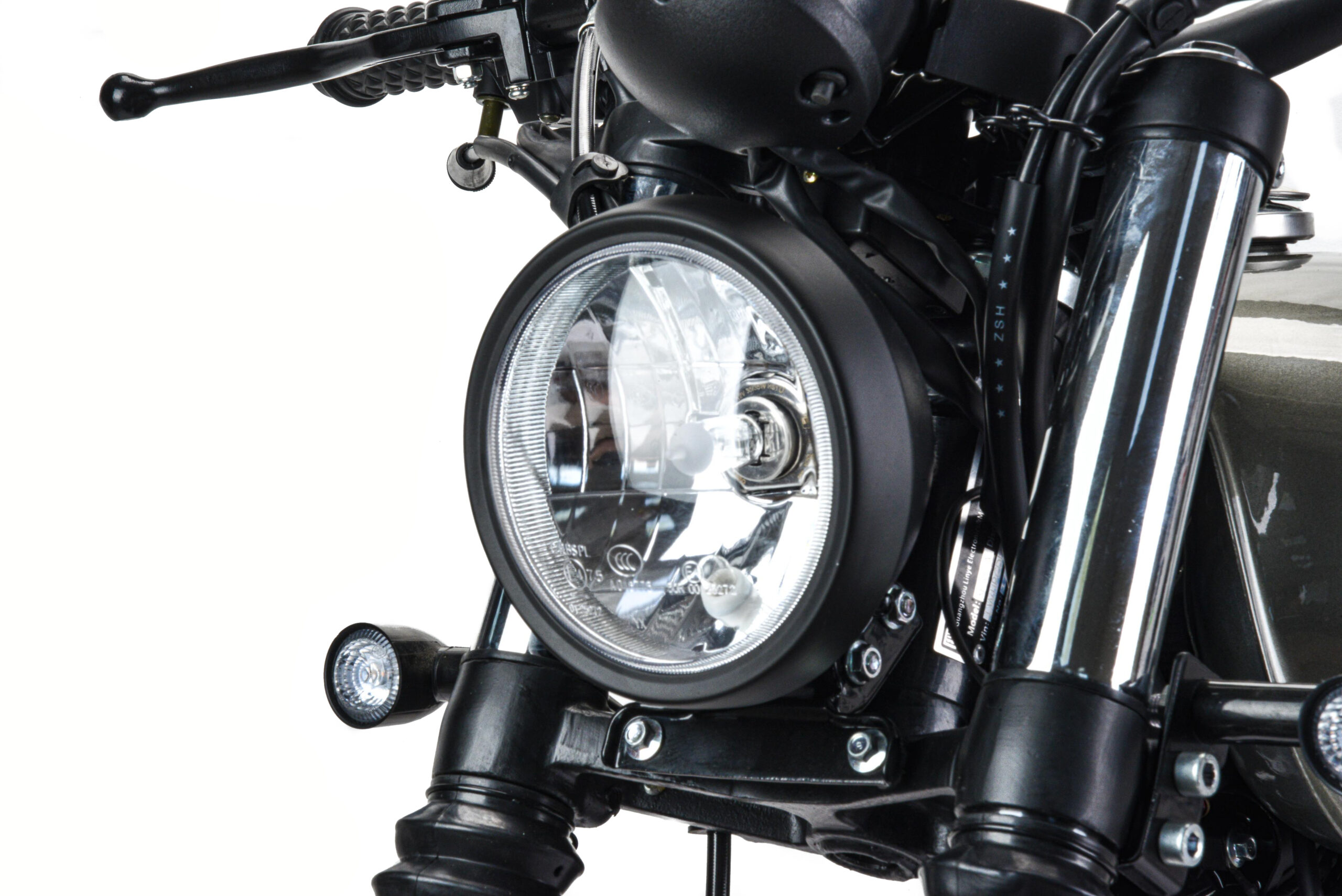 - Дизайн: ретро-стиль с современной LED-оптикой, приборной панелью, креплением номерного знака и классической посадкой.