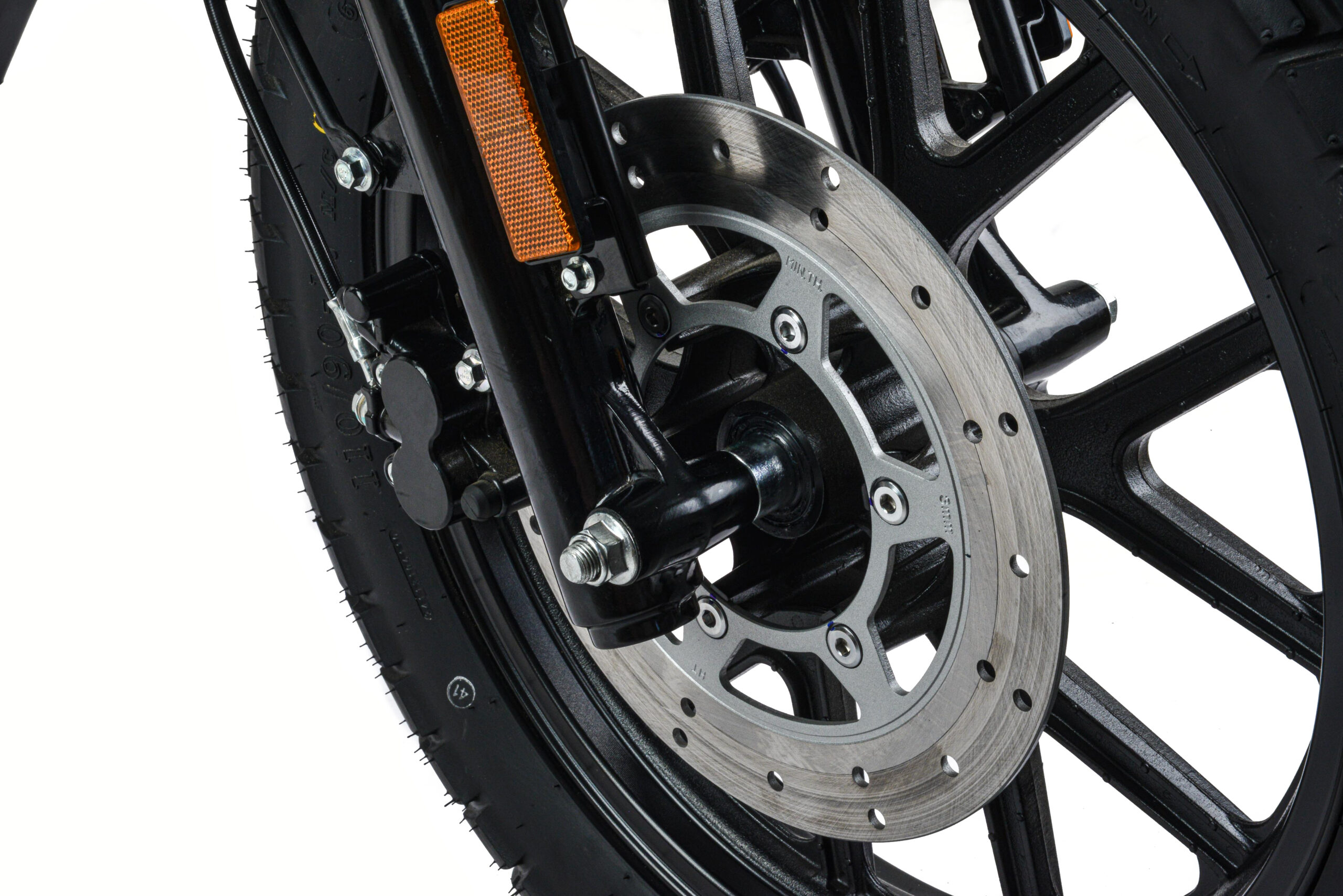 - Комфорт: мягкое рифлёное сиденье, литые колеса, усиленный толстостенный руль — обеспечивают удобство на длительных маршрутах.