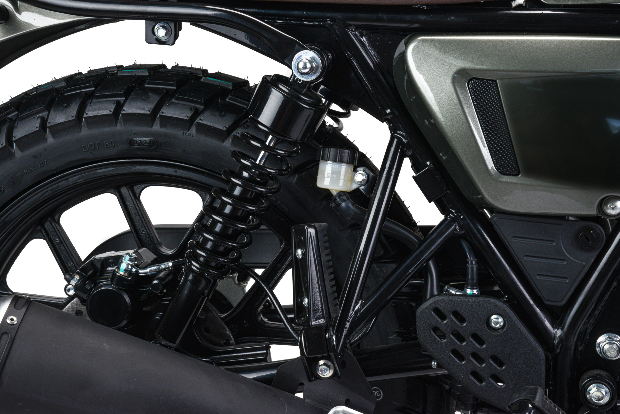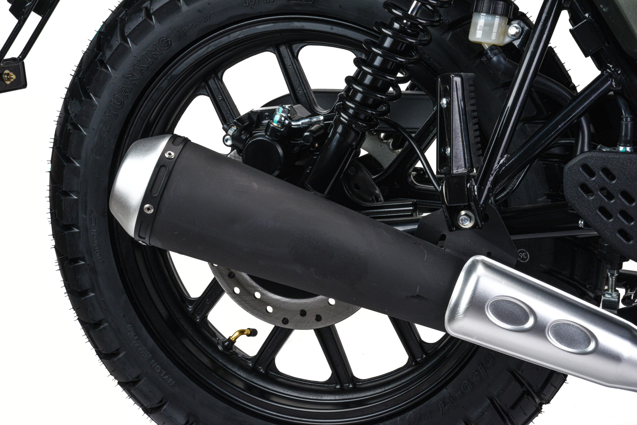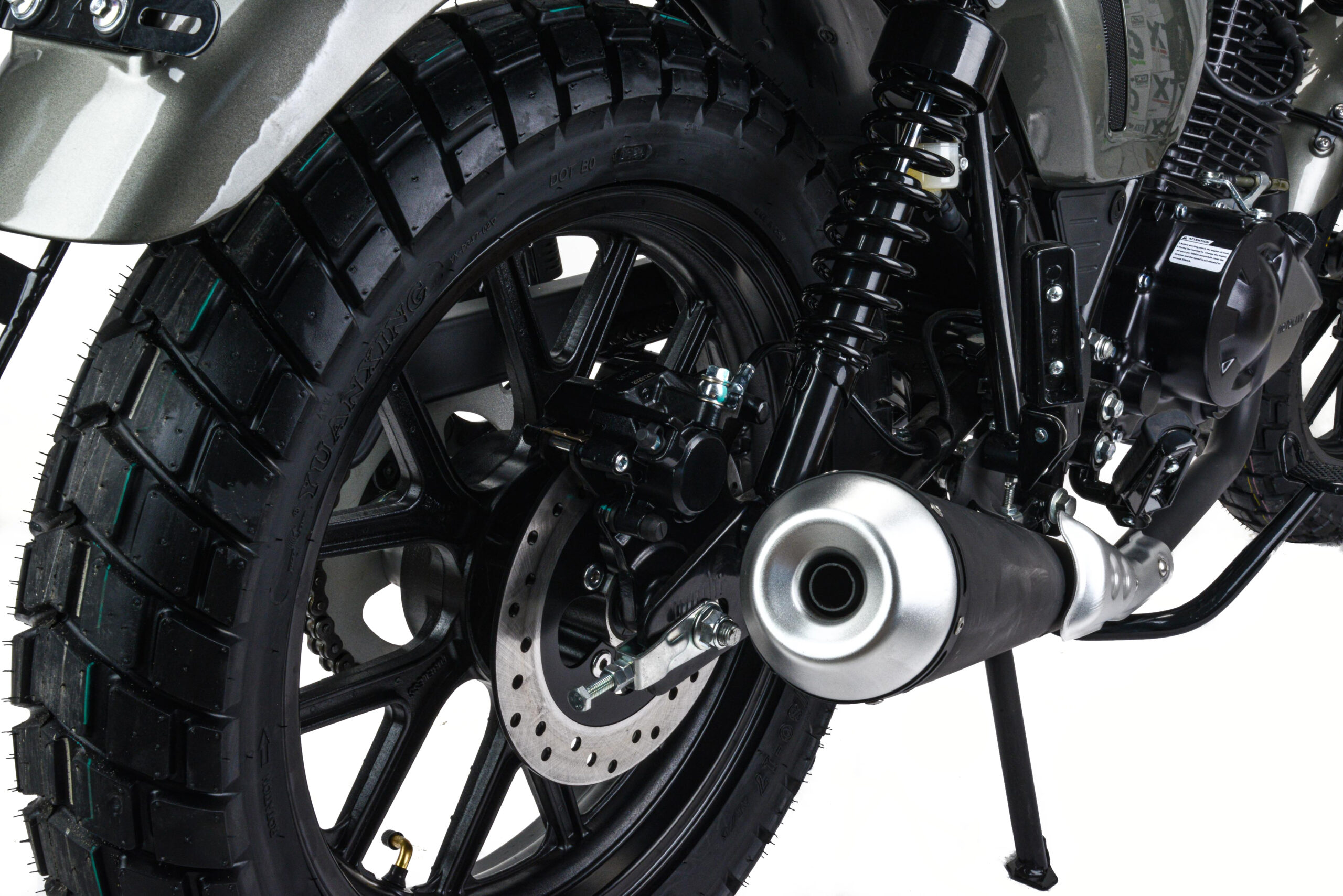- Шины: 110/90-R17 (перед) и 130/80-R17 (зад) — универсальный протектор для асфальта и грунта.