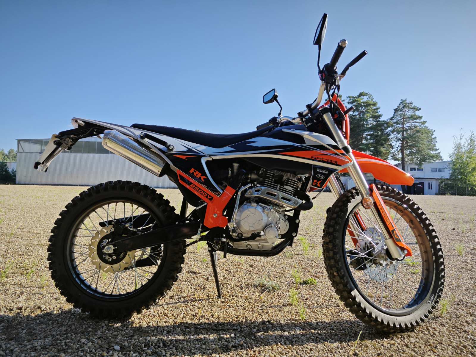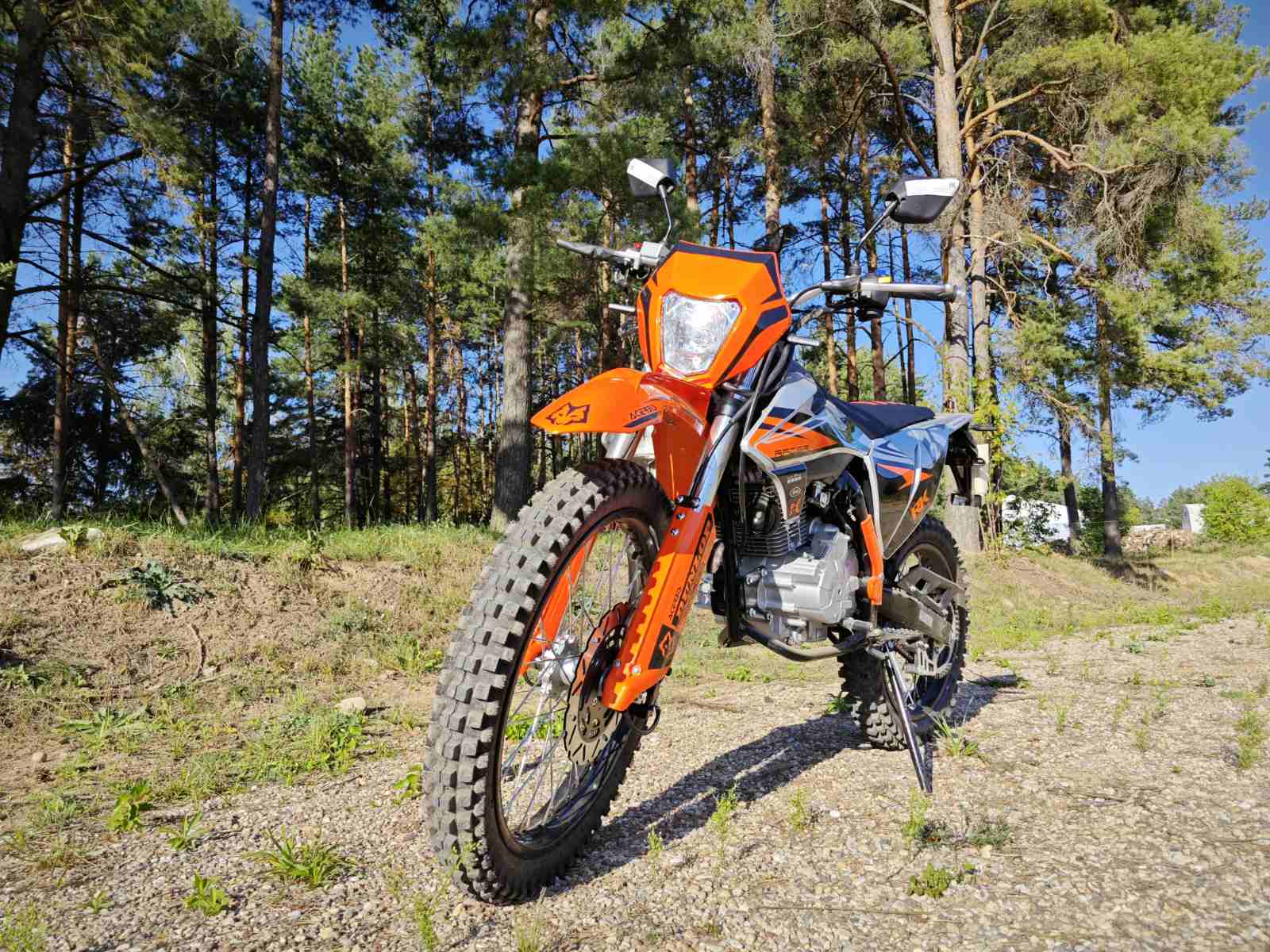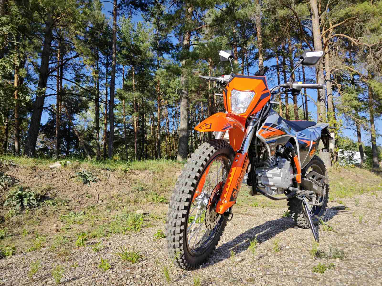 - Особенности: обеспечивает отличную динамику и уверенность как на асфальте, так и на бездорожье. Мощность двигателя в сочетании с легким весом мотоцикла делает его универсальным для различных условий езды.