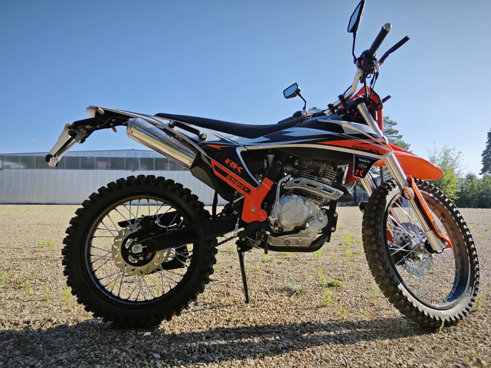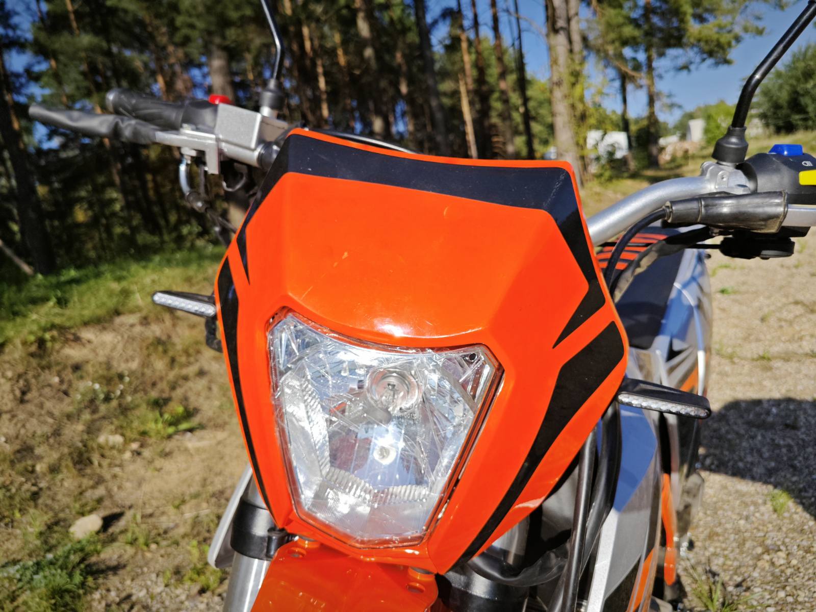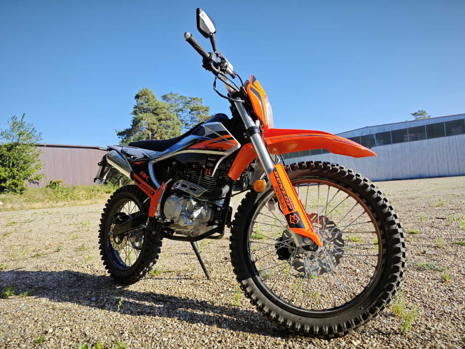 - Особенности: обеспечивает отличную динамику и уверенность как на асфальте, так и на бездорожье. Мощность двигателя в сочетании с легким весом мотоцикла делает его универсальным для различных условий езды.