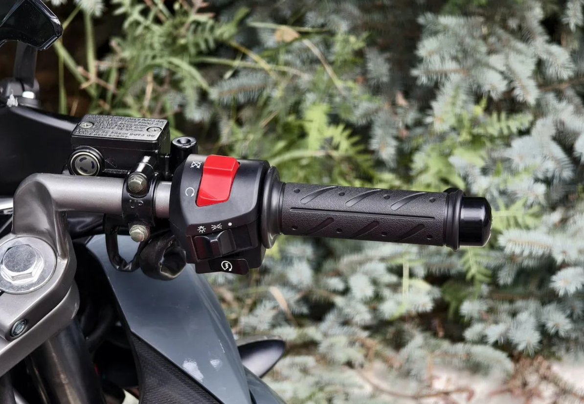 • Управление: органы управления расположены удобно на рукоятках — тормоз, регулировка заслонки карбюратора, звуковой сигнал и переключатель указателей.