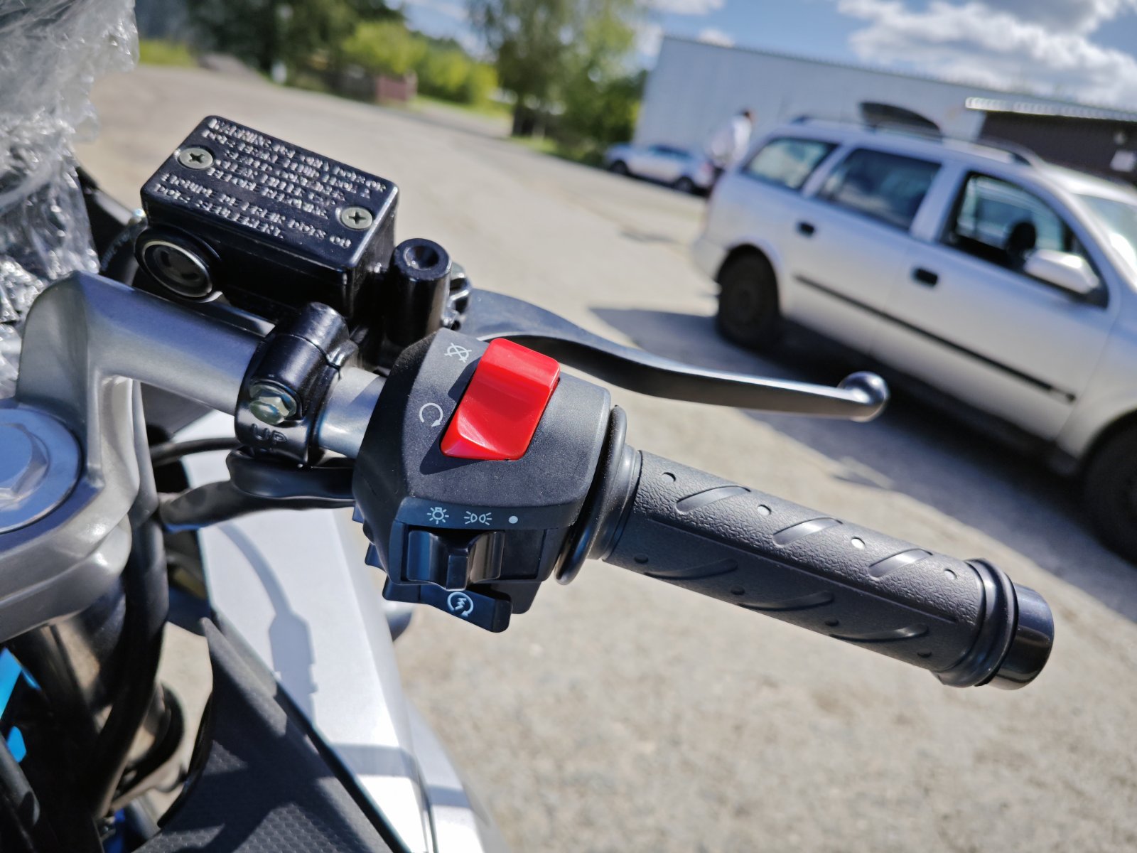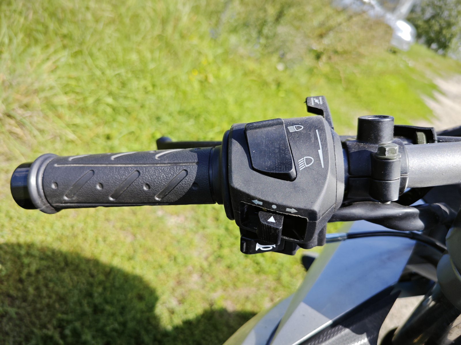 • Управление: органы управления расположены удобно на рукоятках — тормоз, регулировка заслонки карбюратора, звуковой сигнал и переключатель указателей.