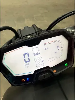 Оптика светодиодная, фара светит белым, широким лучом. Приборная панель цифровая — LCD-экран с показаниями скорости, оборотов, пробега, времени.