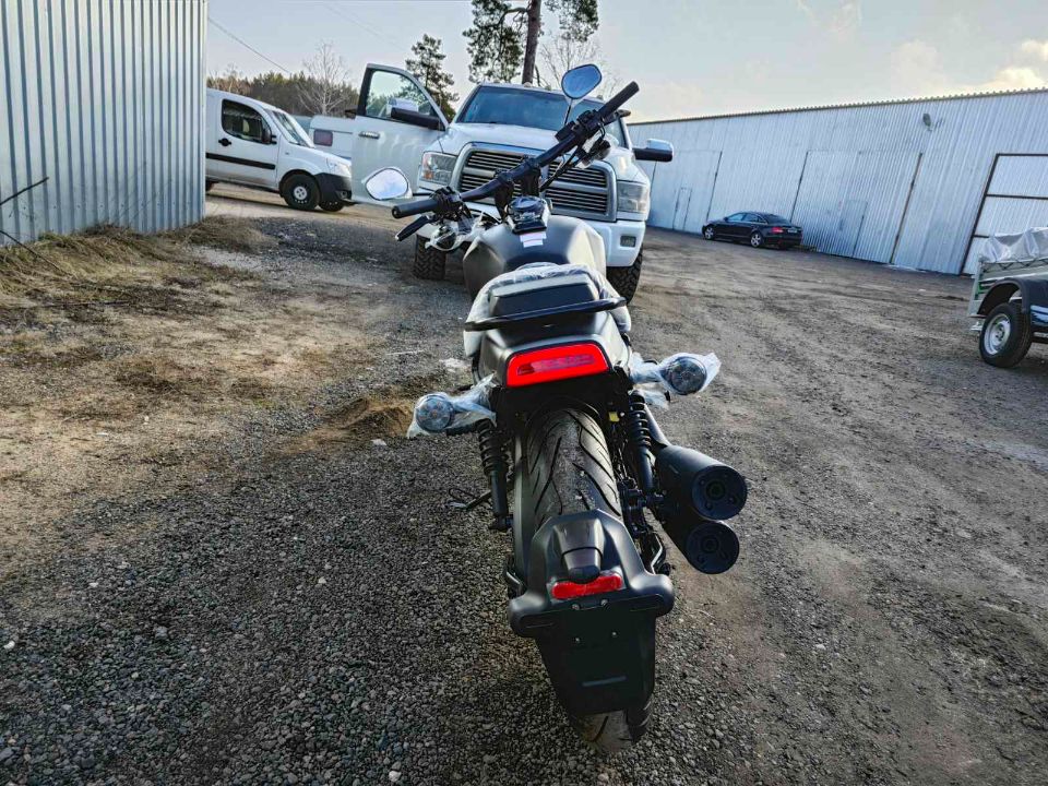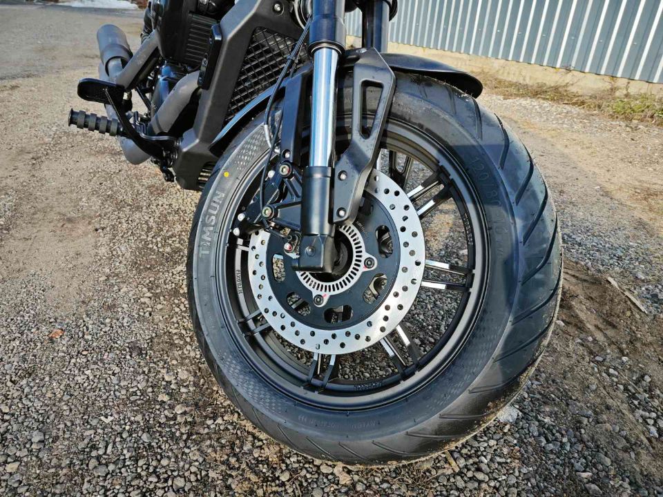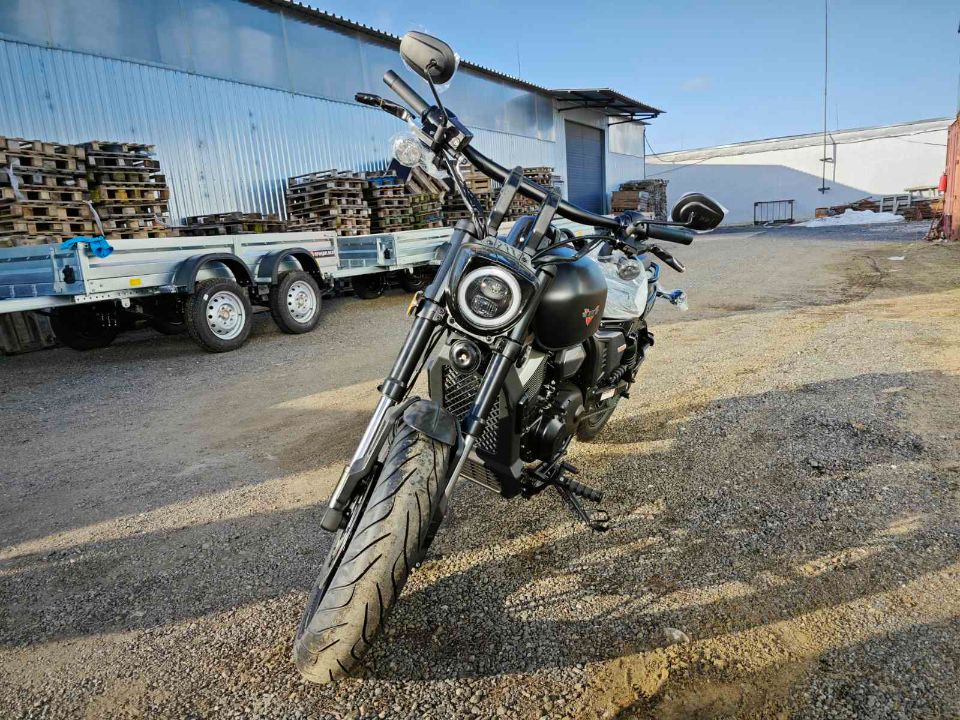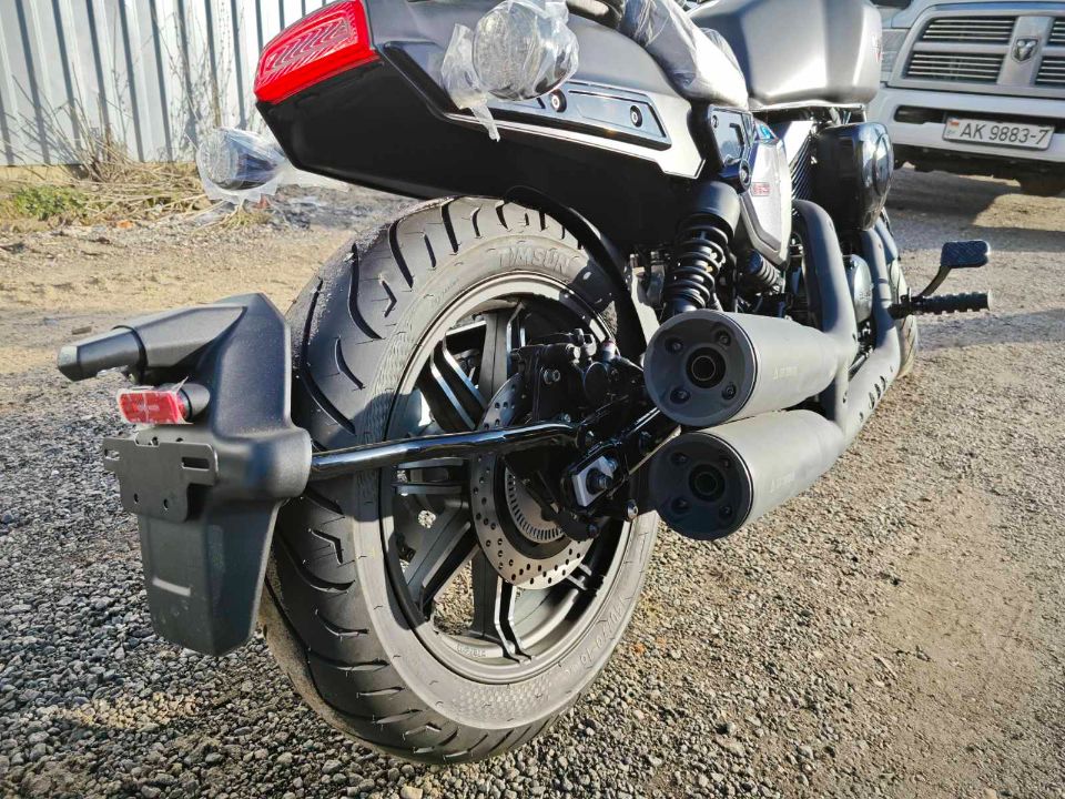 V-образный двухцилиндровый двигатель обеспечивает мощность и динамику, а дизайн мотоцикла с низкой посадкой и мускулистым корпусом подчёркивает его харизматичный и агрессивный облик.