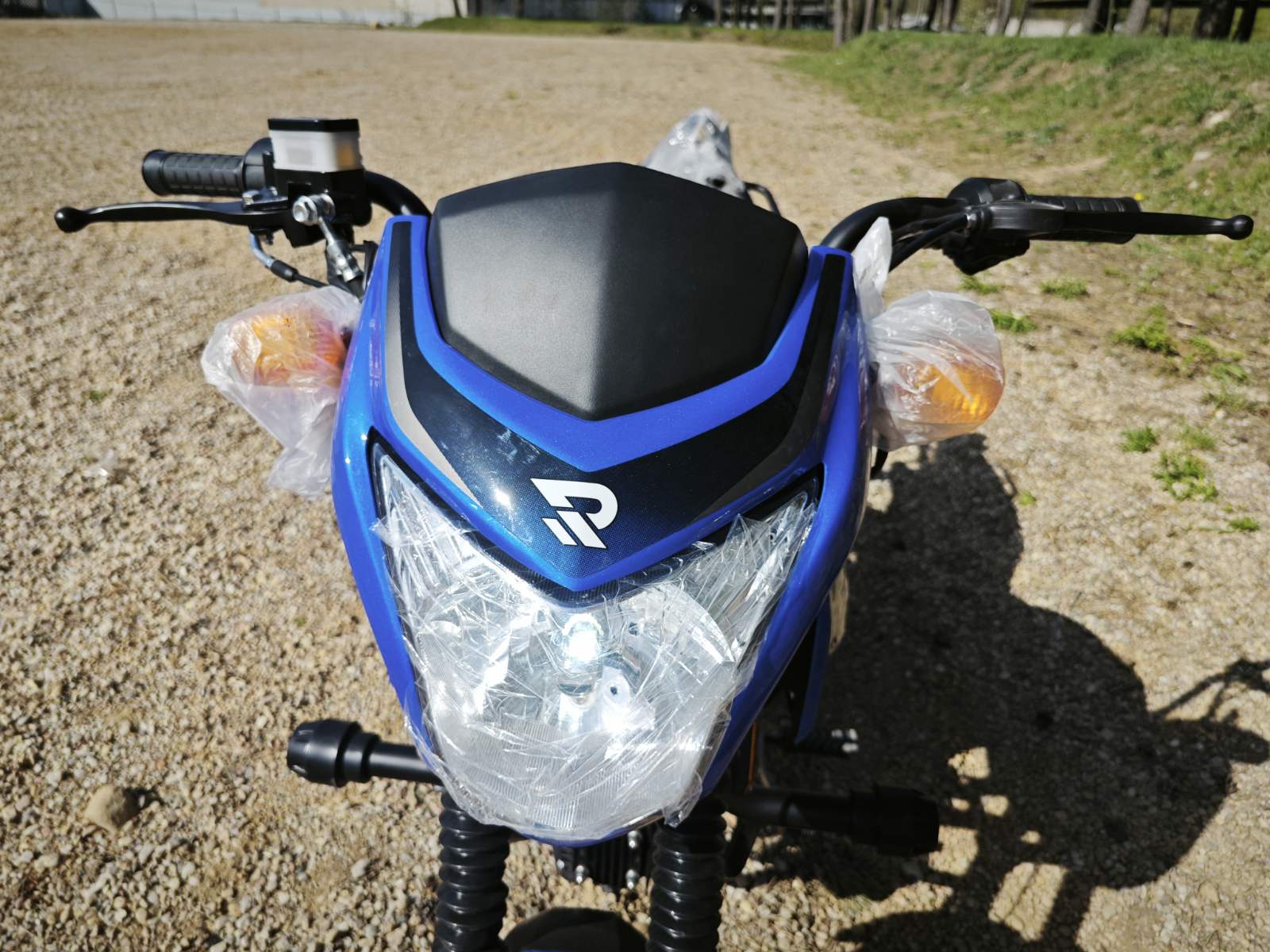 Мопед выполнен в современном стиле с ярким пластиком, обтекателем фары и пятилучевыми литыми дисками. Глушитель, поднимающийся от заднего колеса, придает ему динамичный вид. Светодиодная фара обеспечивает отличное освещение в темное время суток и заметность днем.