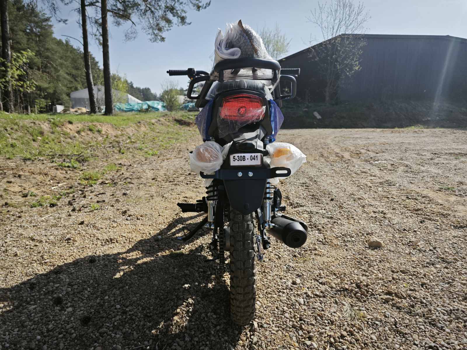 Модель оснащена прочными крашпедами и дугами безопасности, защищающими пластик и важные узлы при падениях, что особенно важно для городской эксплуатации.