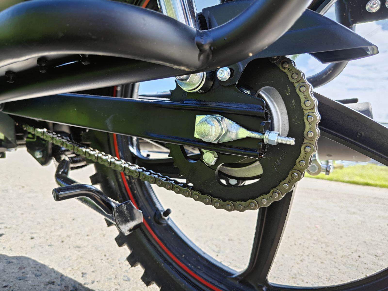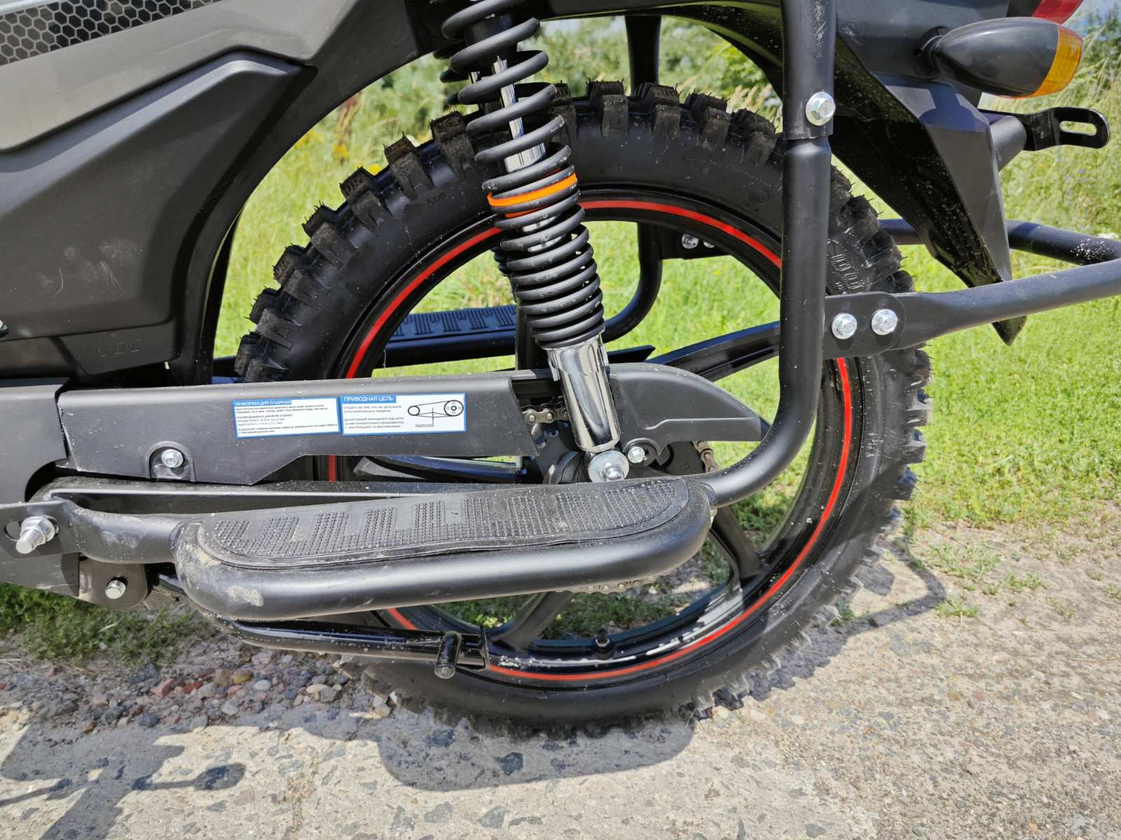 • Задняя подвеска: два амортизатора с усиленными пружинами и буферами, регулируемые по преднатяжению для настройки под вес и стиль езды.