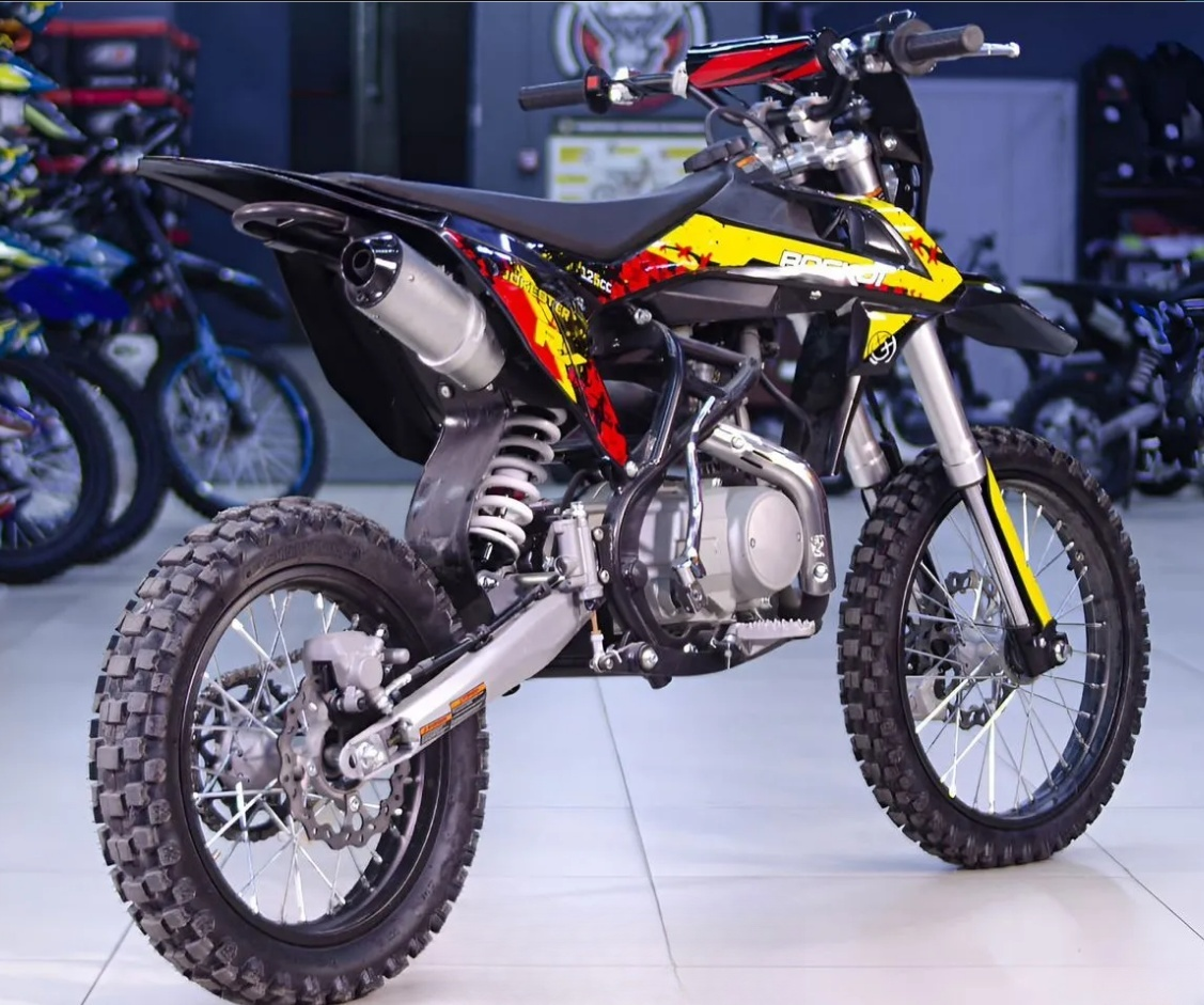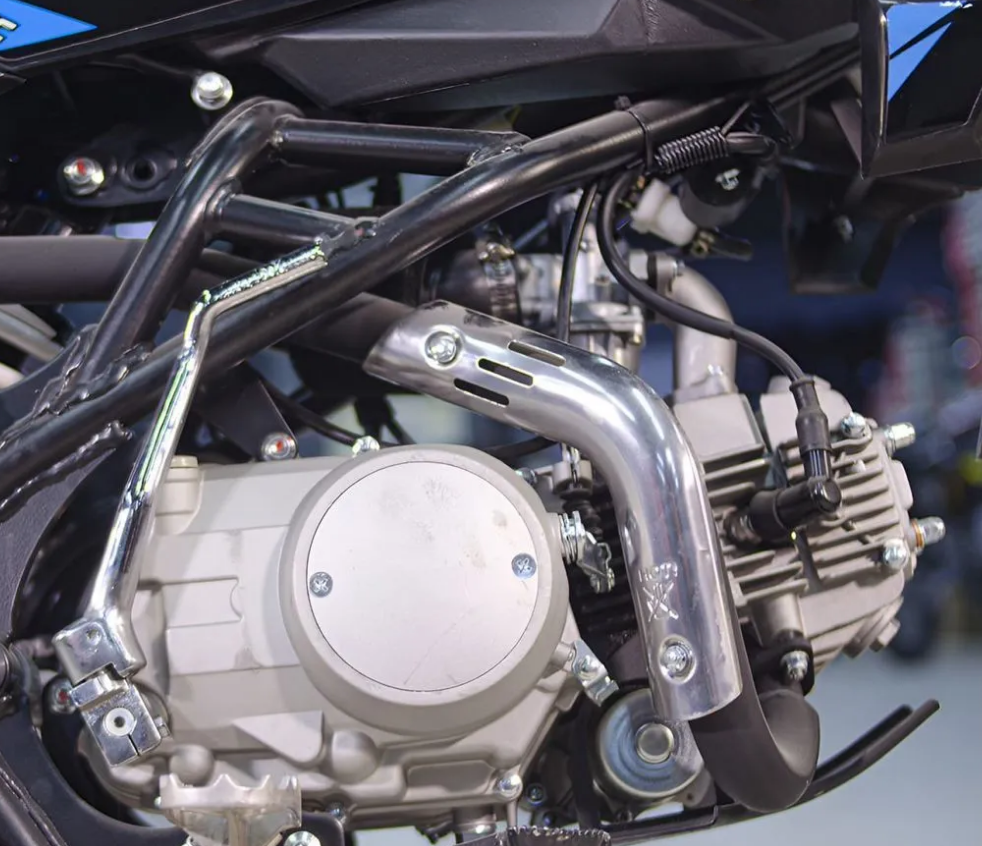 - Особенности: Конструкция рамы рассчитана на высокие нагрузки, что позволяет использовать питбайк как подросткам, так и взрослым райдерам