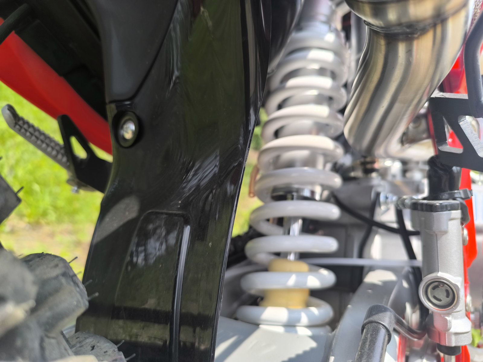 - Подвеска: передняя — телескопическая (830 мм), задняя — регулируемый моноамортизатор (450 мм)