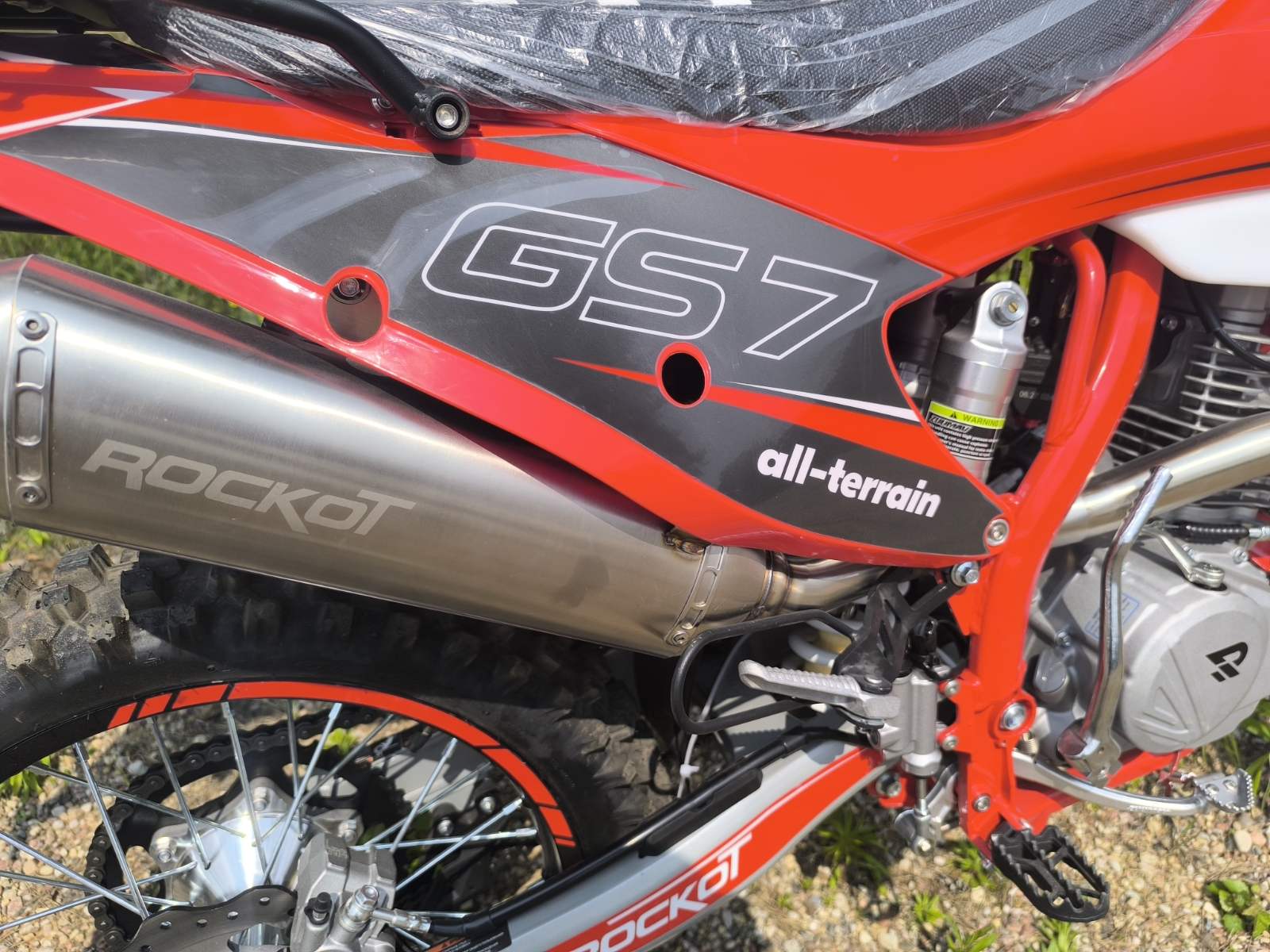 ROCKOT GS7 ALL-TERRAIN — современный среднеразмерный эндуро-мотоцикл с ЭПТС, предназначенный для езды как по бездорожью, так и по дорогам общего пользования. Он сочетает прочную конструкцию, мощный двигатель и современные технические решения, обеспечивая универсальность и надежность.