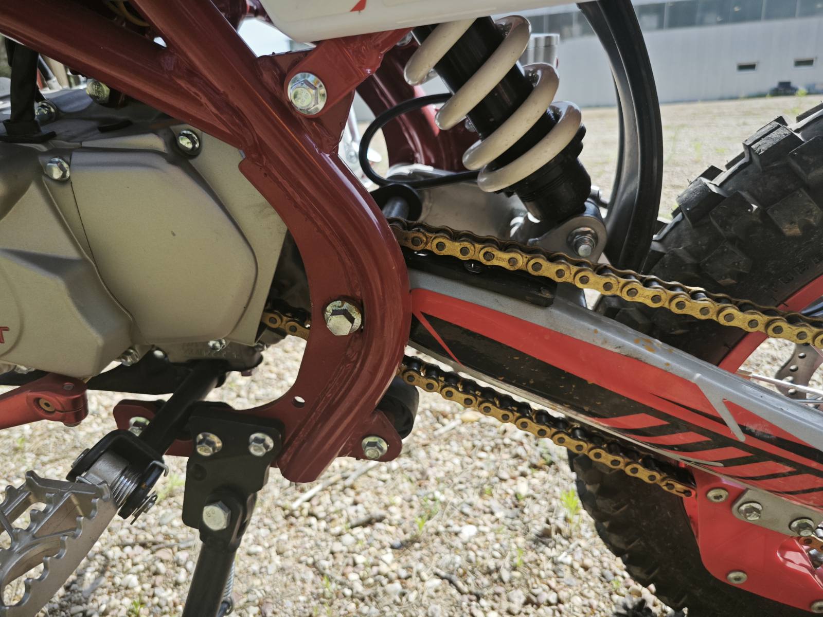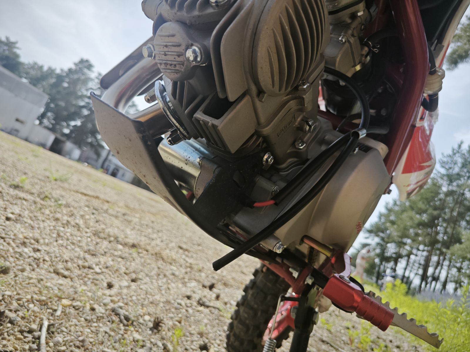 - Передняя шина 70/100-17, задняя 90/100-14 с глубоким грязевым протектором для отличного сцепления на бездорожье.
