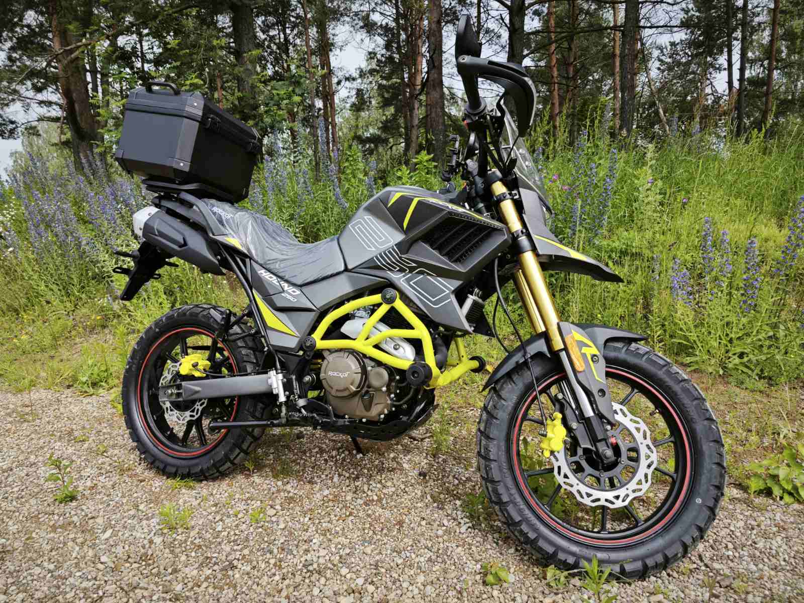 Мотоцикл турэндуро Rockot Hound 250 2.0 4 valves с ЭПТС — это современный турэндуро, созданный для активных путешествий и экстремальных поездок как по городским улицам, так и по бездорожью. Благодаря обновленному дизайну, мощному двигателю и продуманной конструкции, этот мотоцикл сочетает в себе стиль, надежность и высокую производительность. Он идеально подойдет для тех, кто ценит универсальность, комфорт и возможность легко адаптироваться к различным условиям эксплуатации.