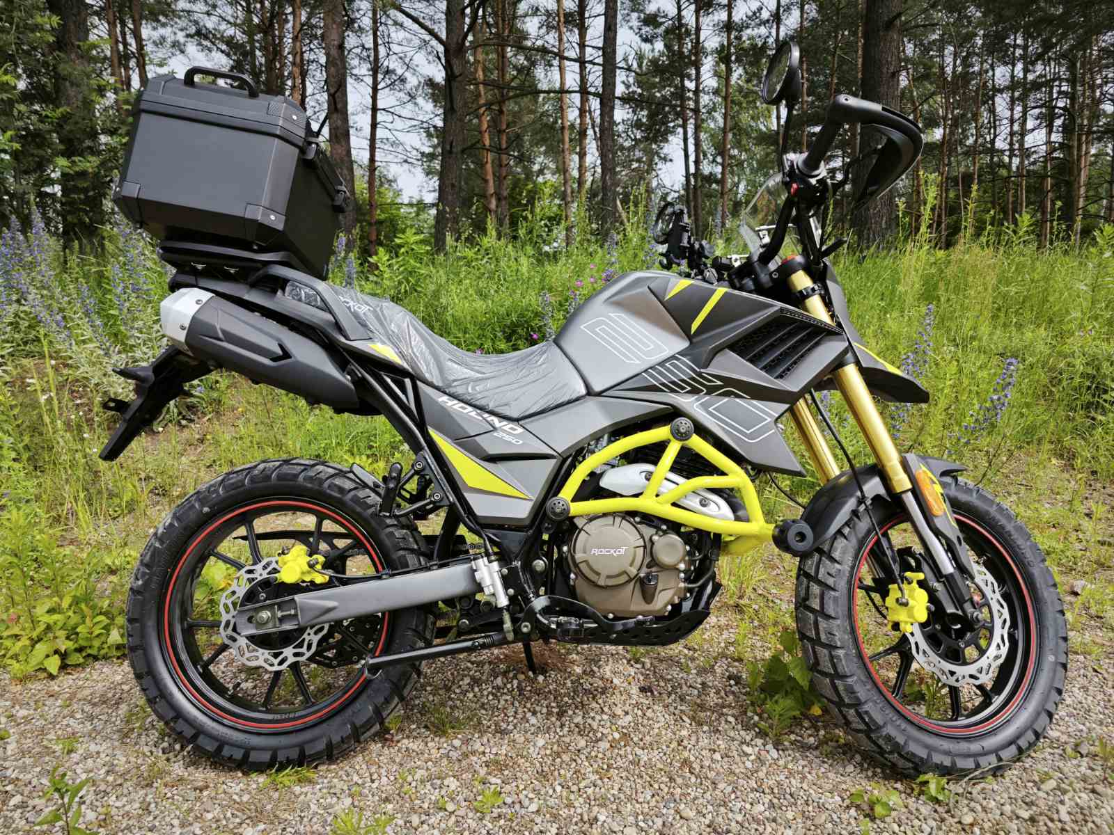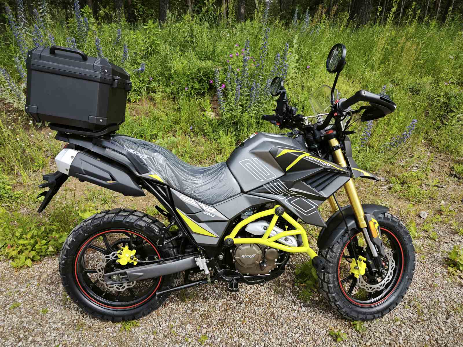 Мотоцикл турэндуро Rockot Hound 250 2.0 4 valves с ЭПТС сочетает в себе современные технологии, стильный дизайн и отличную производительность, делая его привлекательным выбором для любителей приключений на двух колесах.