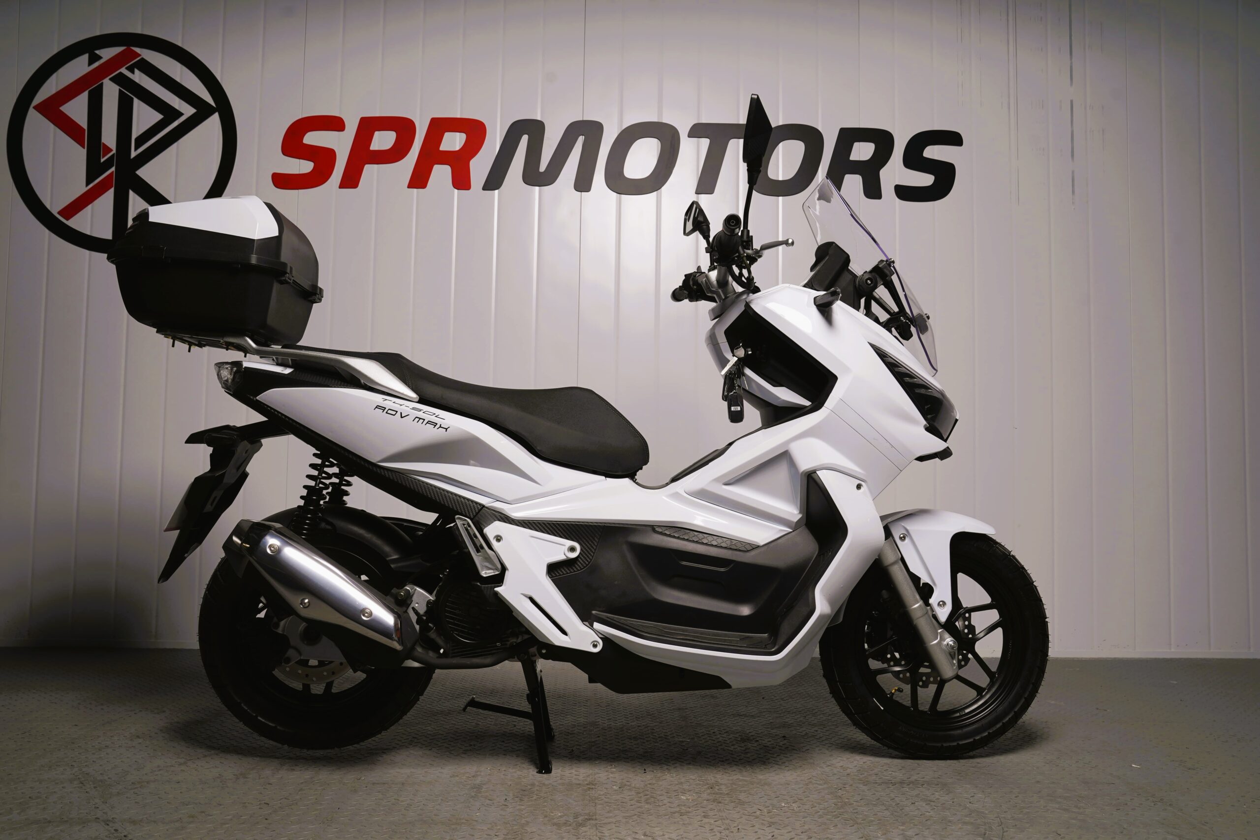 PRMOTORS ADV MAX T4-50L — это практичный городской турист, который продается сразу с полным комплектом багажа: верхним кофром и парой боксов. Серый цвет — стильный и немаркий выбор для ежедневной эксплуатации. Его надежный 150-кубовый двигатель обеспечивает скорость до 95 км/ч и невероятную топливную экономичность (2.5 л/100км), а внедорожный клиренс в 170 мм открывает дорогу не только по асфальту. Это лучший выбор для тех, кто ищет универсального, выносливого и полностью готового к работе двухколесного помощника.