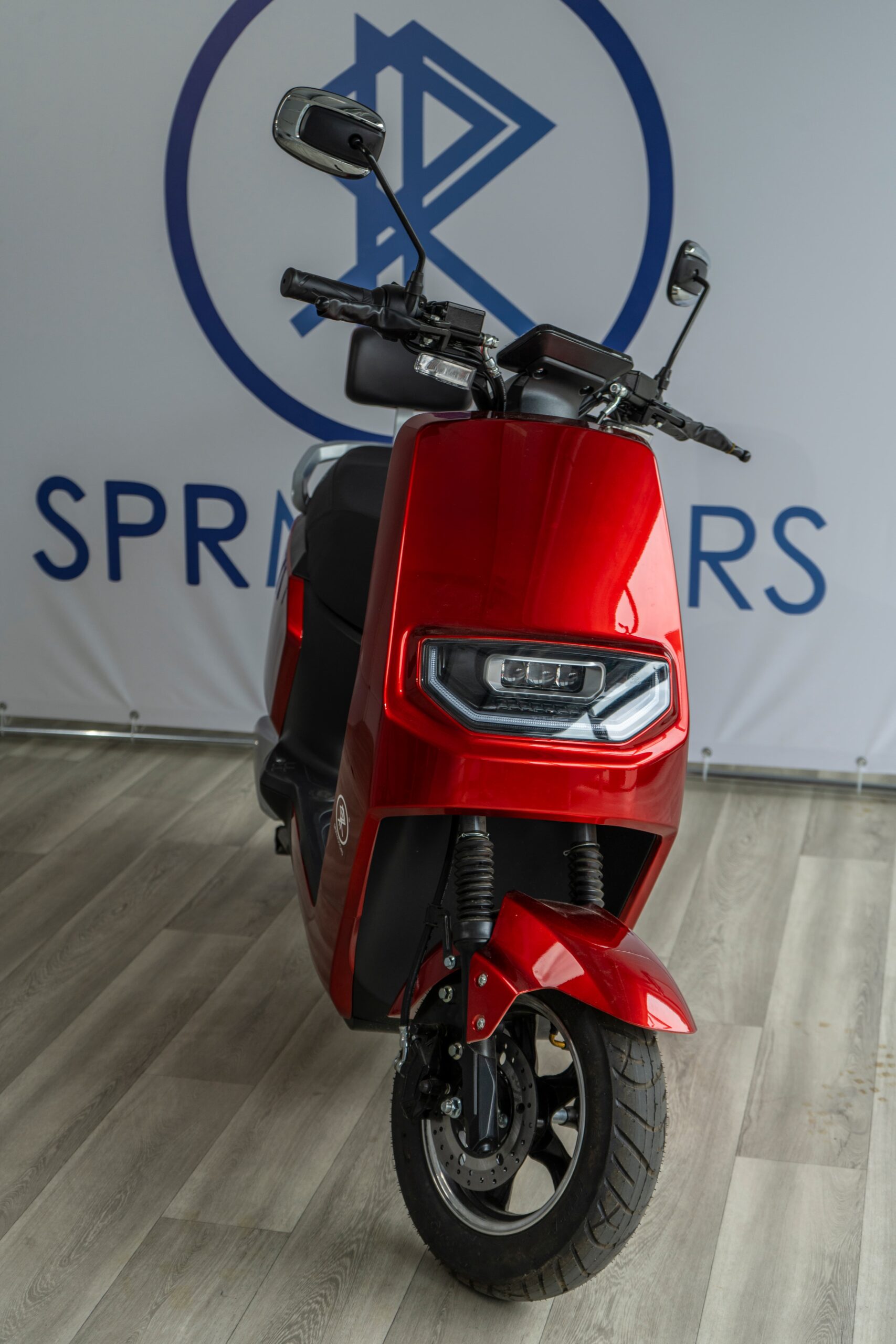 Электроскутер SPRMOTORS Cube-2 E-H1 в динамичном красном цвете с мотором 1000Вт и запасом хода до 65 км он сочетает в себе достаточную мощность, автономность и минимальные затраты на обслуживание.
