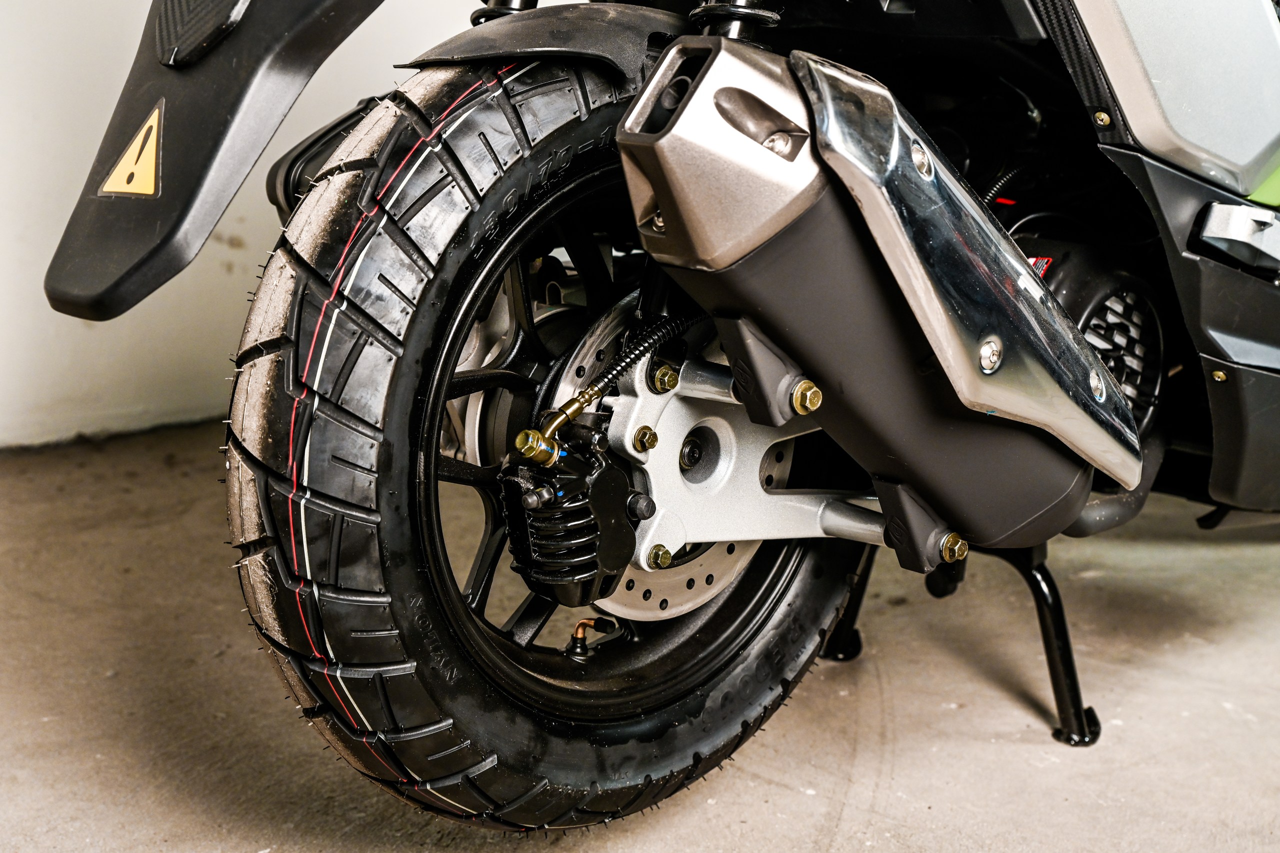- Большие колеса (14 и 13 дюймов) и длинная колесная база (1330 мм): Обеспечивают отличную курсовую устойчивость на высоких скоростях и сглаживают неровности дороги.
