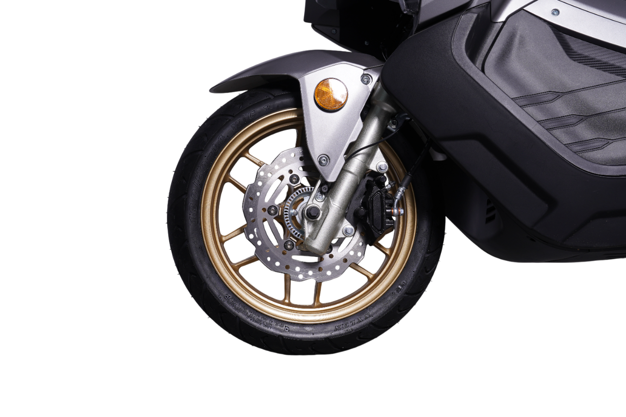 - Большие колеса (14 и 13 дюймов) и длинная колесная база (1330 мм): Обеспечивают отличную курсовую устойчивость на высоких скоростях и сглаживают неровности дороги.