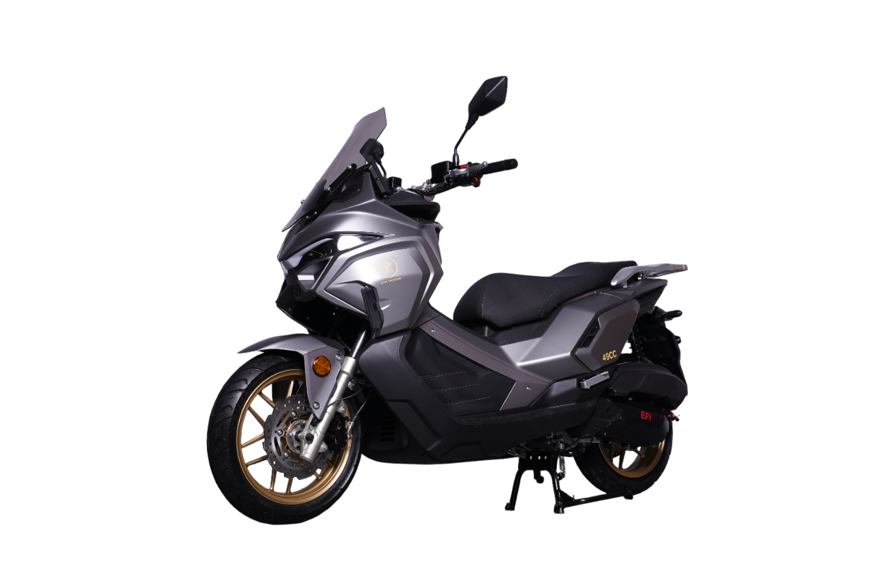SPRMOTORS TRAVEL MAX T4-50H — это полностью укомплектованный туристический комплект. В базовой комплектации уже установлены вместительные боковые кофры и топ-кейс, что избавляет вас от лишних трат и поисков аксессуаров. Сердцем этого туриста стал надежный 180-кубовый инжекторный двигатель (EFI), который легко раскручивает скутер до 110 км/ч, оставаясь при этом удивительно экономичным (всего 2.8 л/100 км). Идеален для загородных поездок, ежедневных прогулок и уверенных путешествий по трассе.