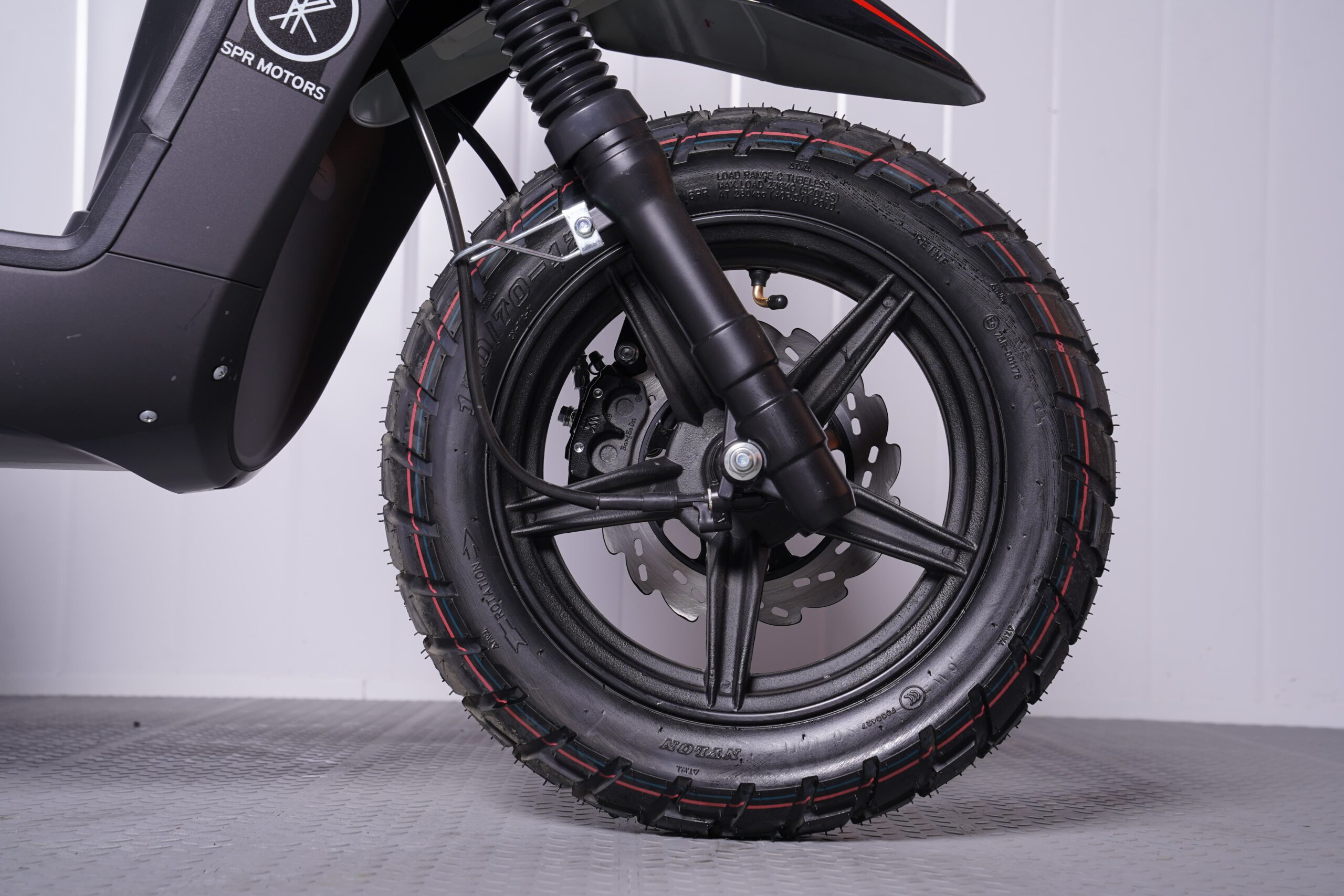 • Уверенность на дороге. 12-дюймовые колеса (120/70-12) и гидравлическая подвеска обеспечивают стабильность и комфорт. Дисковый тормоз спереди дает четкое и безопасное торможение в городских условиях.