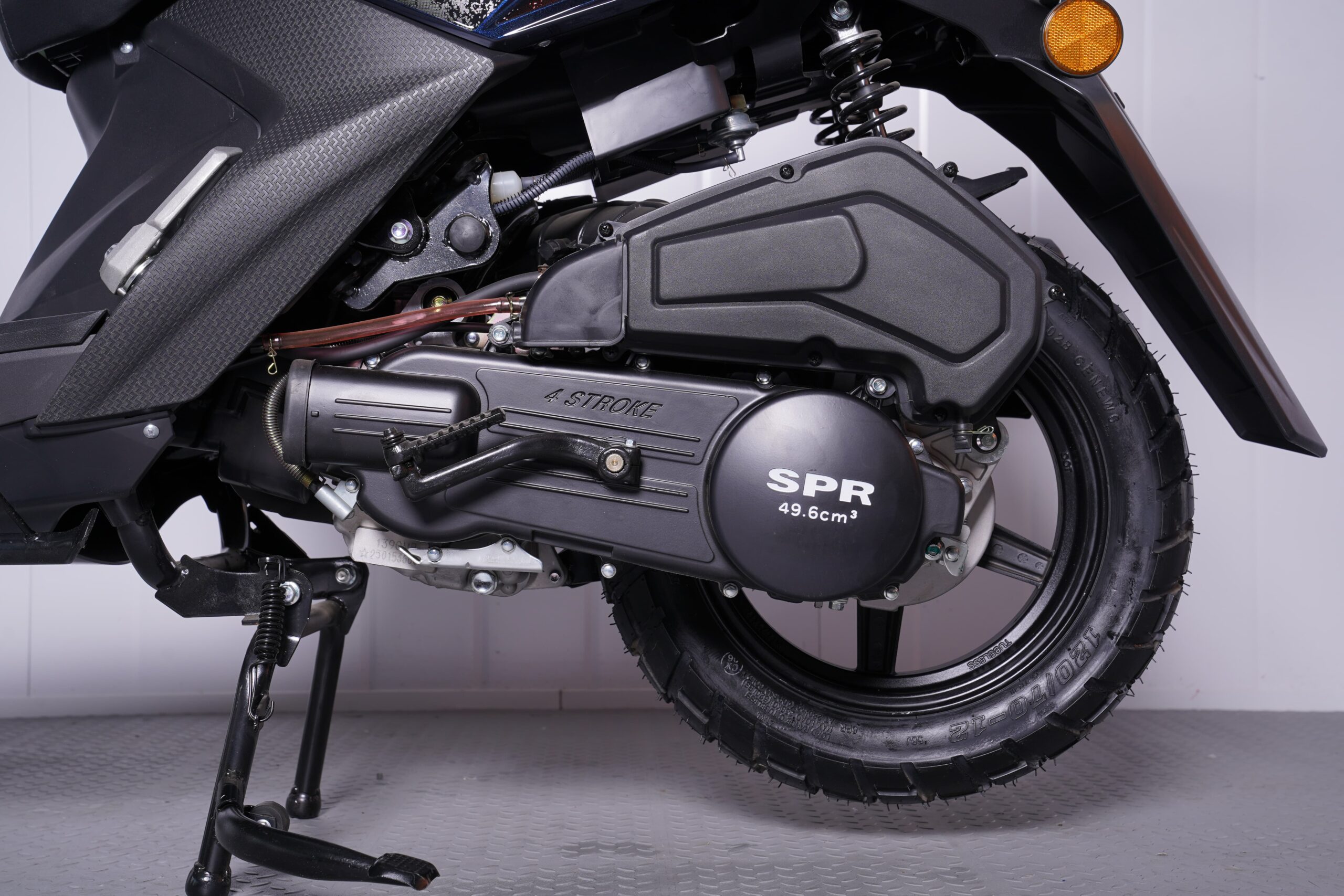 Скутер SPRMOTORS Zoom-9 сочетает в себе настоящий 150-кубовый двигатель для динамичной езды и официальные документы на 49сс, что позволяет управлять им с самыми доступными водительскими правами.