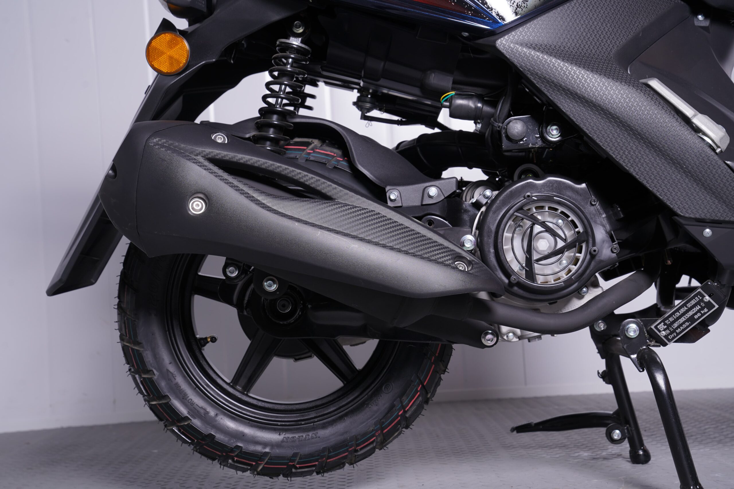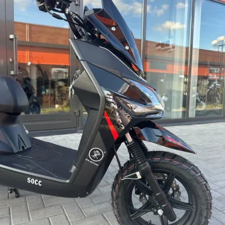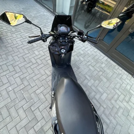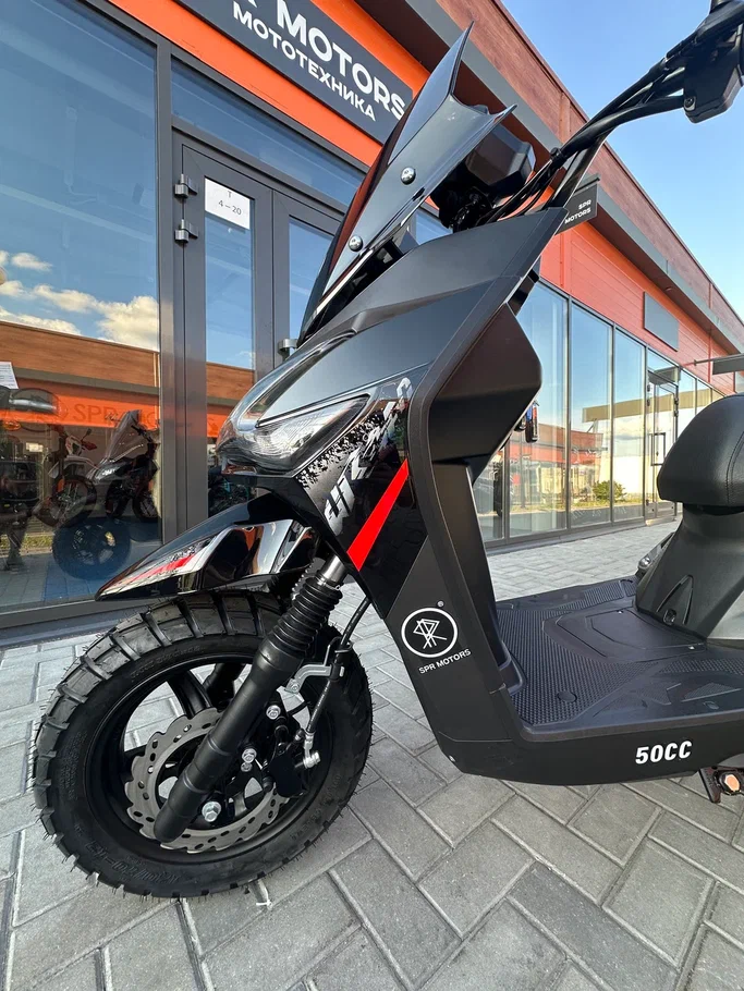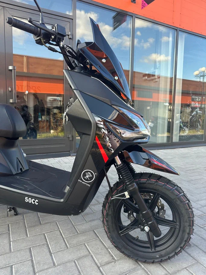 • Уверенность на дороге. 12-дюймовые колеса (120/70-12) и гидравлическая подвеска обеспечивают стабильность и комфорт. Дисковый тормоз спереди дает четкое и безопасное торможение в городских условиях.