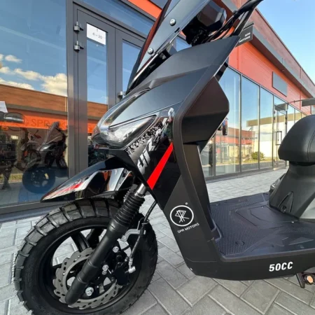Скутер SPRMOTORS Zoom-9 сочетает в себе настоящий 150-кубовый двигатель для динамичной езды и официальные документы на 49сс, что позволяет управлять им с самыми доступными водительскими правами.