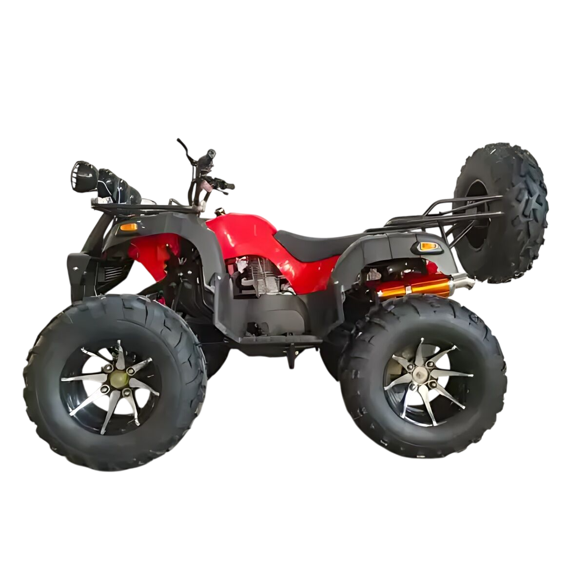 Размеры квадроцикла: длина 1800 мм, ширина 1110 мм, высота 1160 мм. Вес составляет около 165 кг, что обеспечивает хорошую маневренность и устойчивость на дороге. Эргономичный дизайн гарантирует удобство посадки для райдеров любого роста.