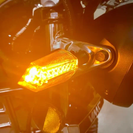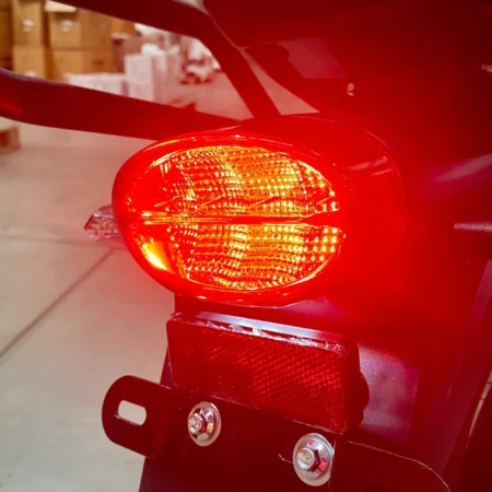 Мопед оснащён эффективными тормозами и современной системой освещения, что повышает безопасность водителя в любых условиях.